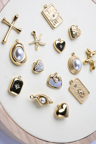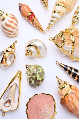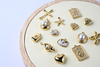 Ciondolo in Acciaio Placcato Oro 14k - Conchiglia con Perla 15x9mm