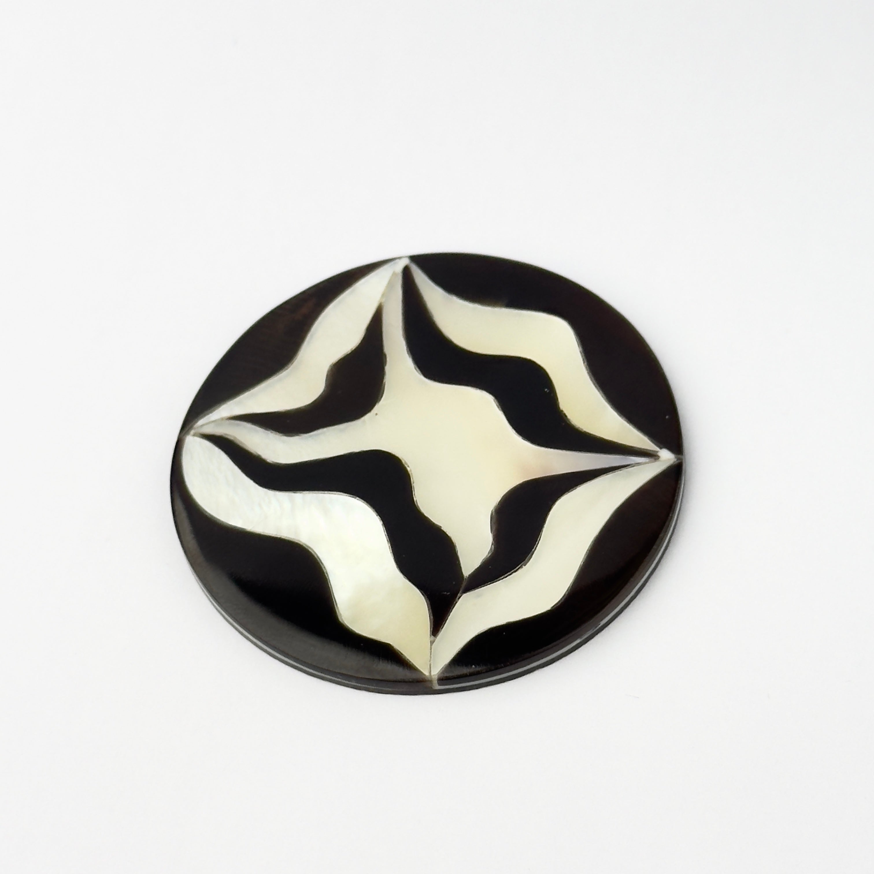 Un pezzo unico della nostra Collezione Artigianale "Luce d'Avorio". Questo componente unisce la lucentezza naturale della madreperla alla profondità della resina, in una delicata armonia di tonalità avorio.