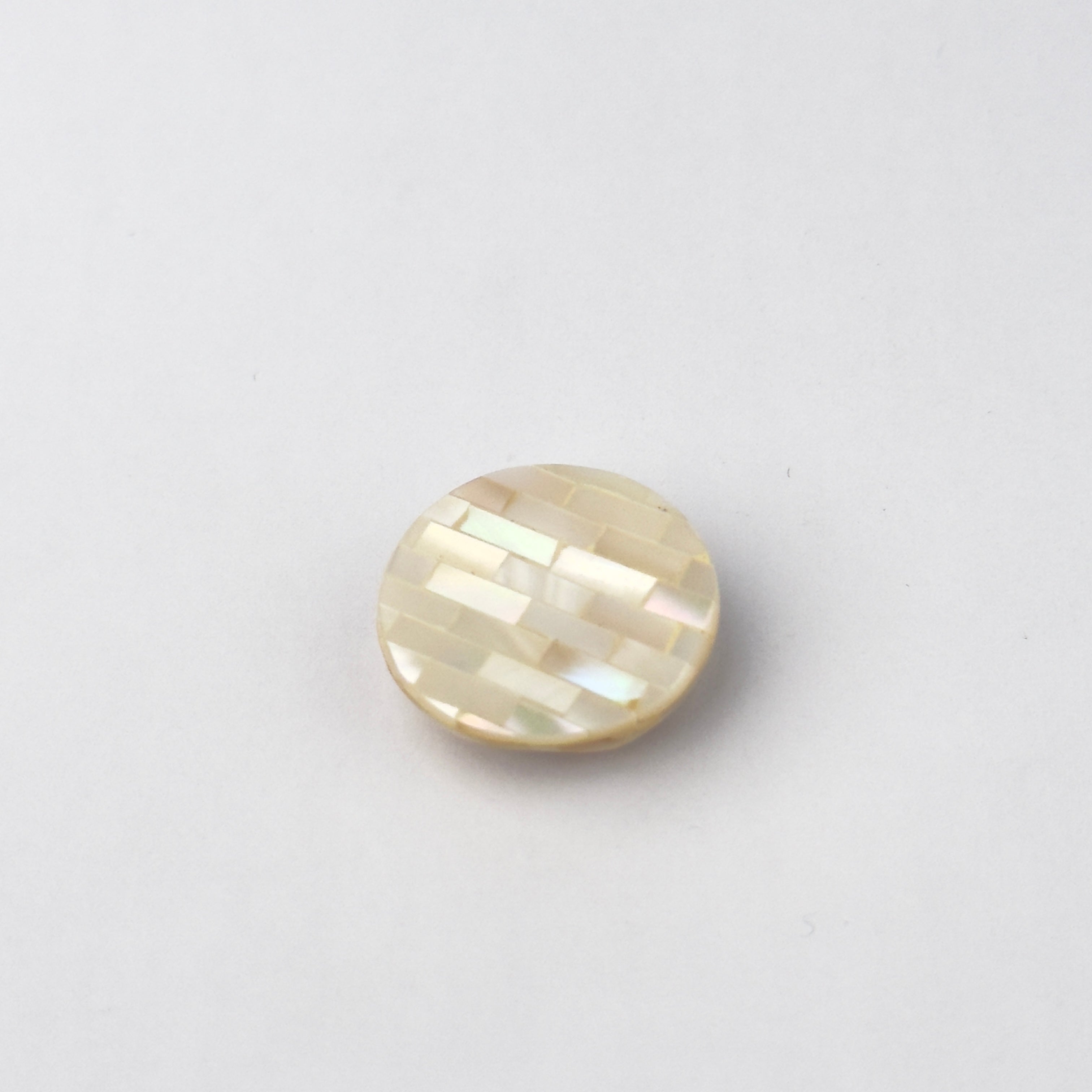 Un pezzo unico della nostra Collezione Artigianale "Luce d'Avorio". Questo componente unisce la lucentezza naturale della madreperla alla profondità della resina, in una delicata armonia di tonalità avorio.