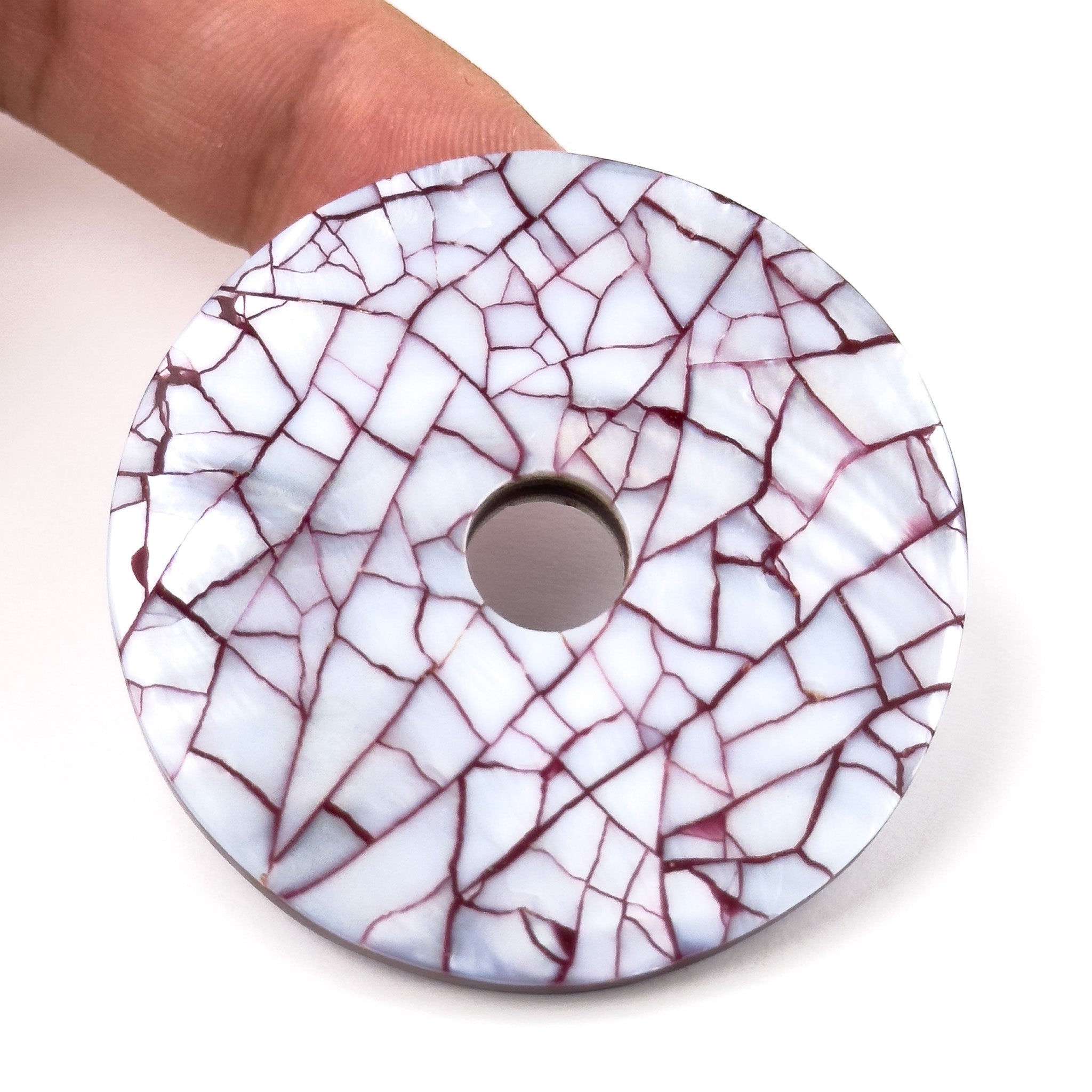 Un pezzo unico della nostra Collezione Artigianale "Luce d'Avorio". Questo componente unisce la lucentezza naturale della madreperla alla profondità della resina, in una delicata armonia di tonalità avorio.