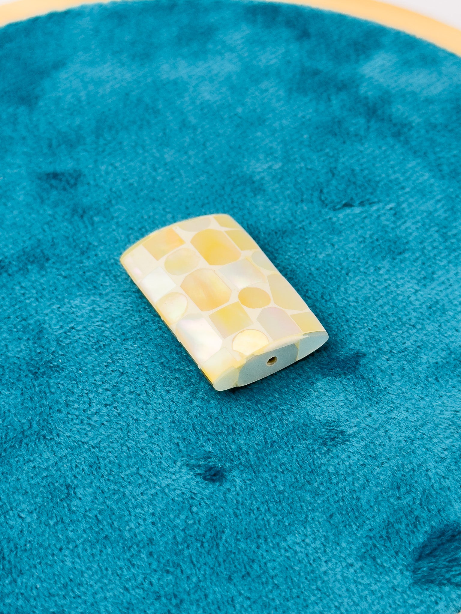 Un pezzo unico della nostra Collezione Artigianale “Riflessi di Miele”. Questo componente cattura la luce in modo straordinario, rivelando calde tonalità giallo miele/dorato e delicati riflessi perlescenti.
