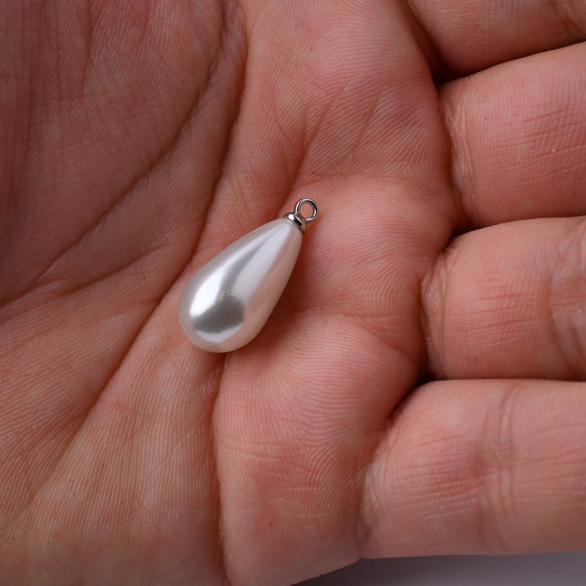 Ciondolo Pearly Goccia Bianco 17x9mm Gancio Argento