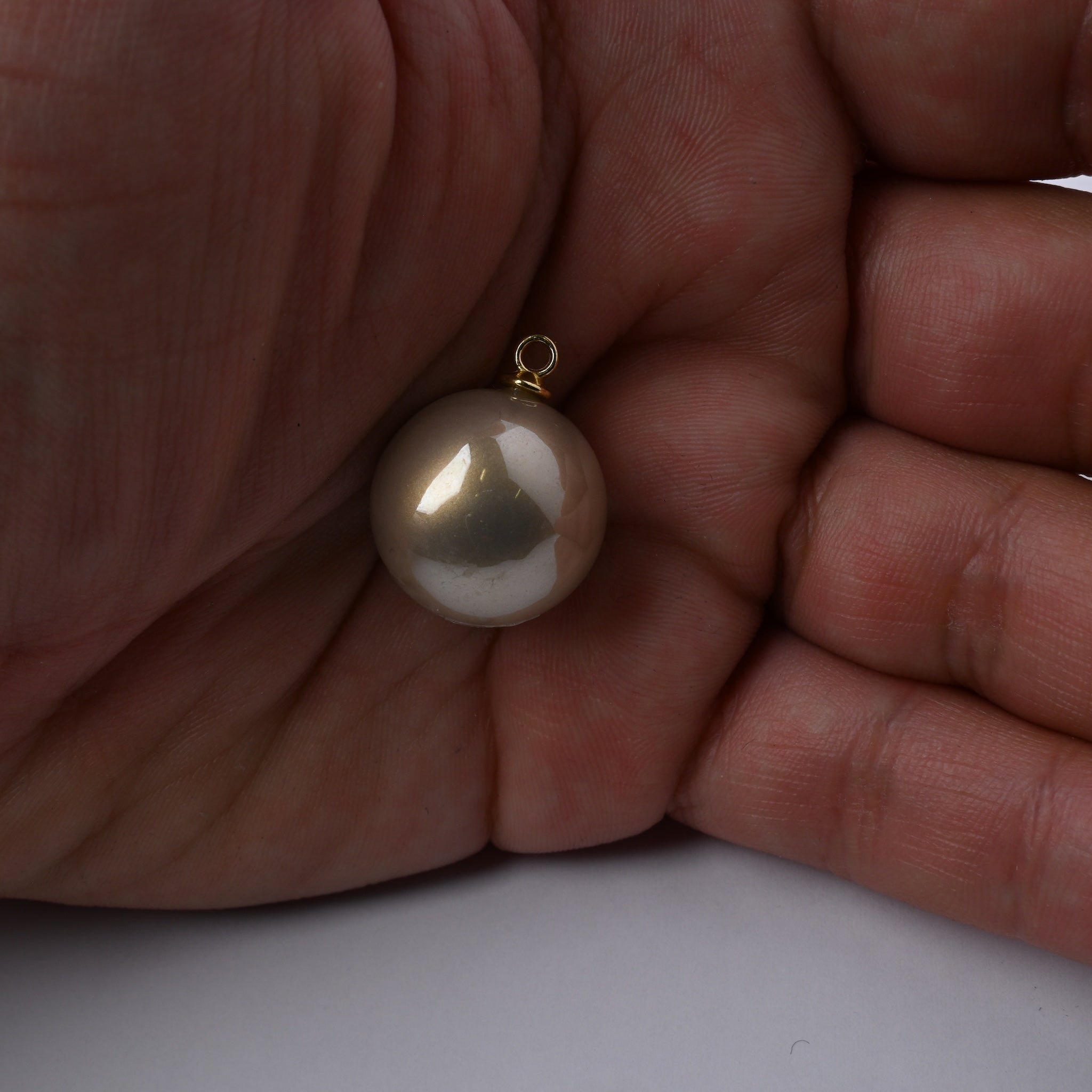 Ciondolo Pearly Tondo Grigio Argenteo 18mm Gancio Oro