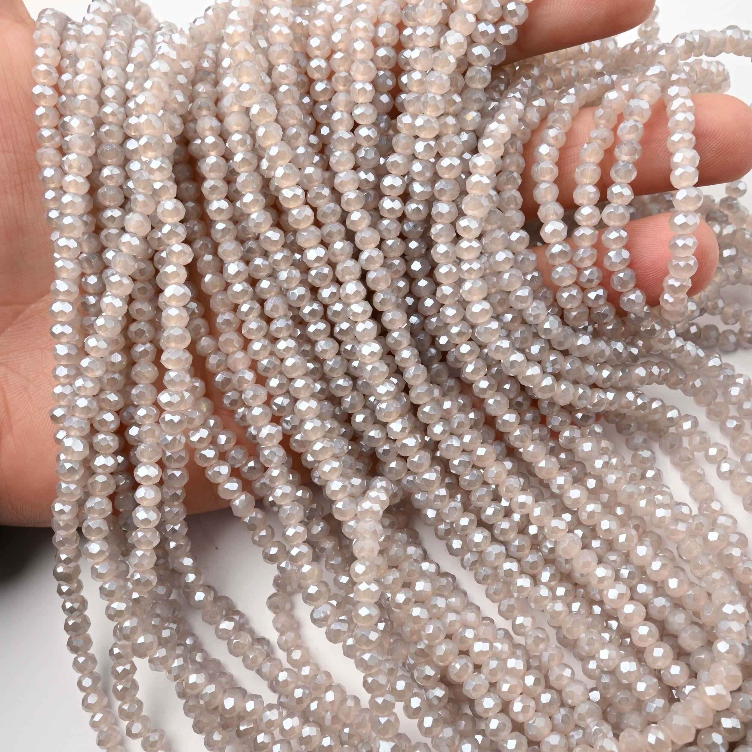 Il classico di ogni collezione. Le nostre rondelle di cristallo da 4mm sono la misura più amata per la sua perfetta armonia tra presenza e delicatezza, che le rende ideali per gioielli eleganti e luminosi. Sono la scelta d'eccellenza per realizzare collane, bracciali e orecchini, oppure come distanziatori di lusso tra perle più grandi. La loro versatilità è un vero 'must-have' per ogni designer.