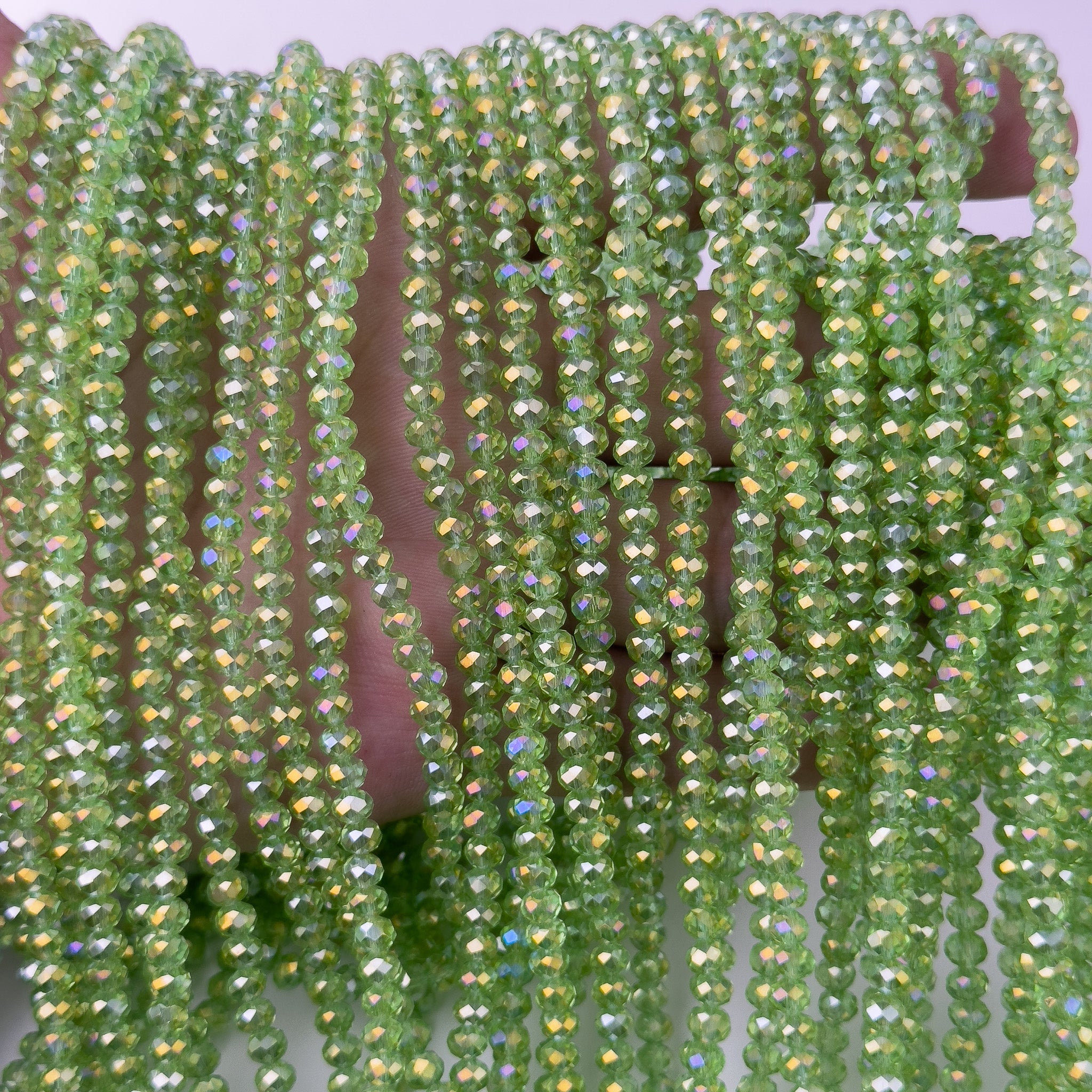 Cristalli Rondella Verde Lime Trasparente Aurora Boreale 4mm - Filo da 40 cm | Sarobidy