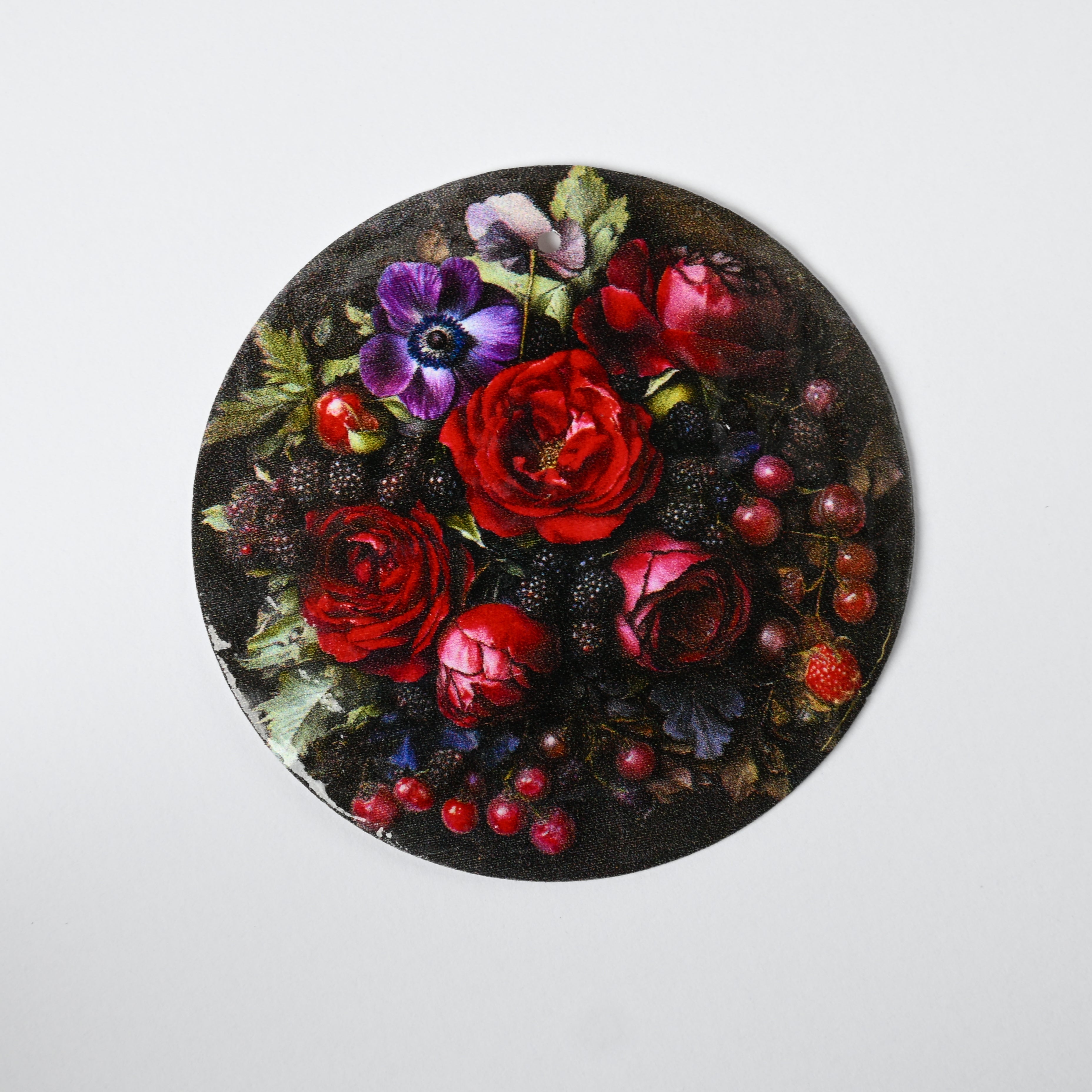 Pendente in Madreperla Bouquet Rose e Frutti di Bosco Disco 50mm