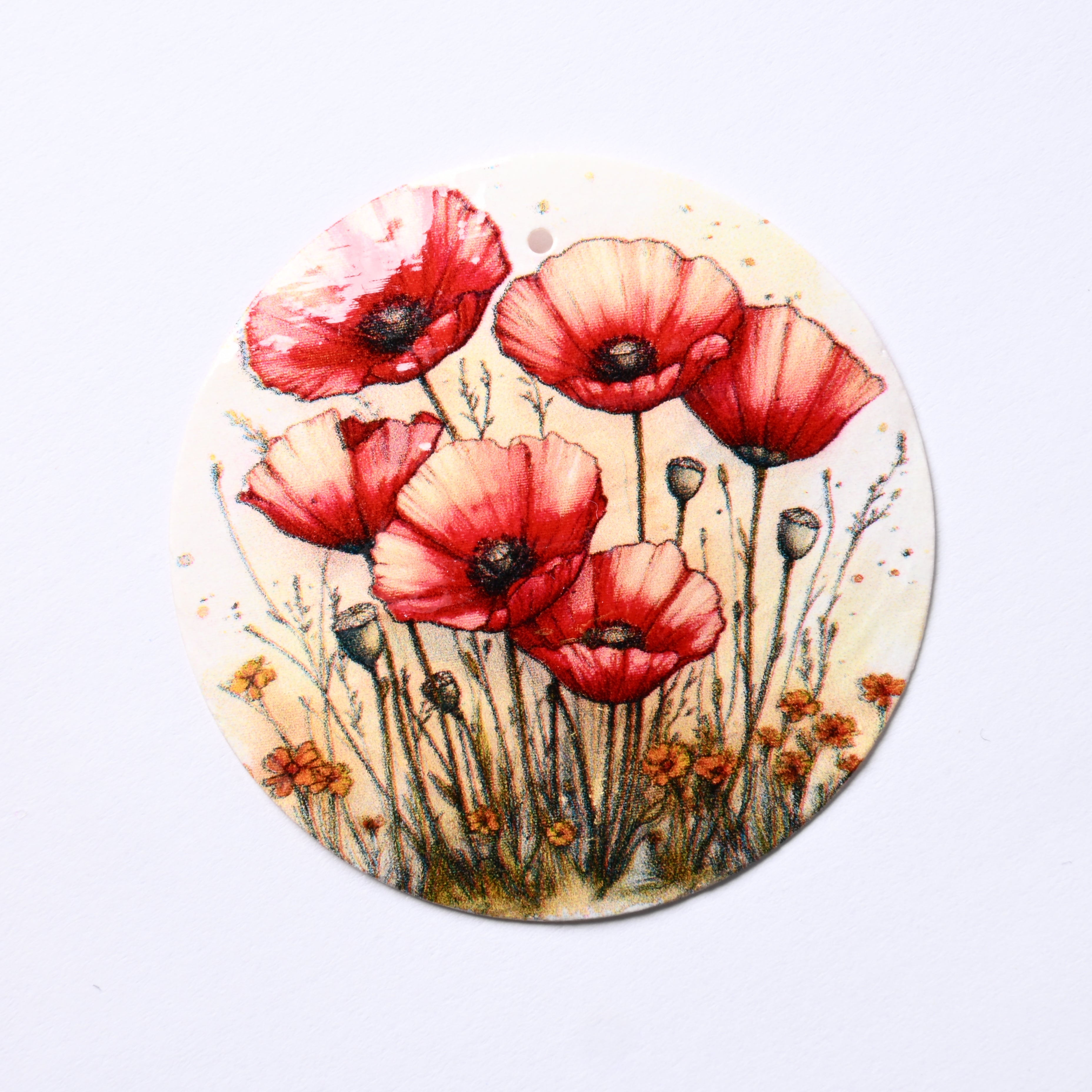 Pendente in Madreperla Papaveri Vintage Disco 50mm