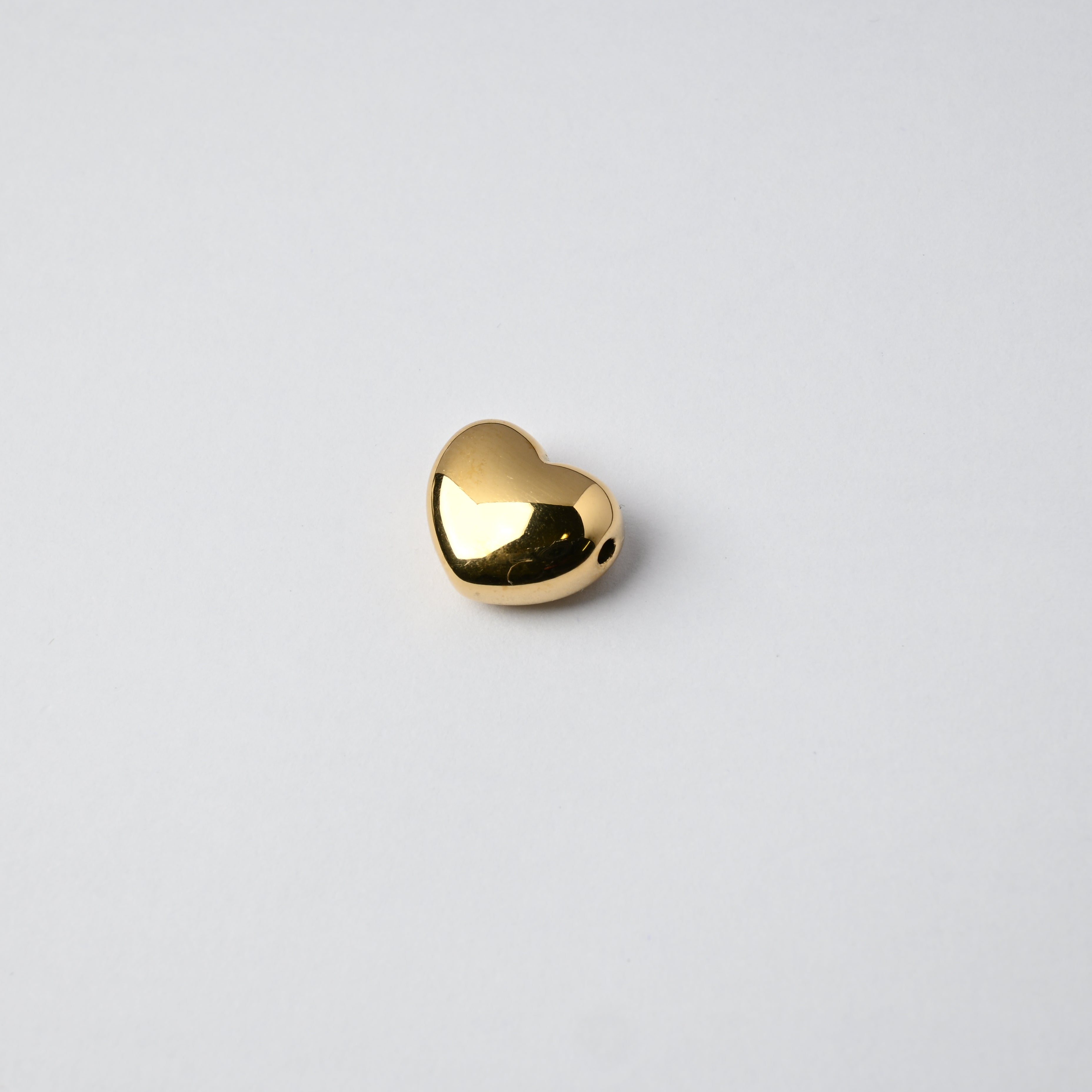 Perla in Acciaio Placcato Oro 14k - Cuore con Foro Passante 12x10mm