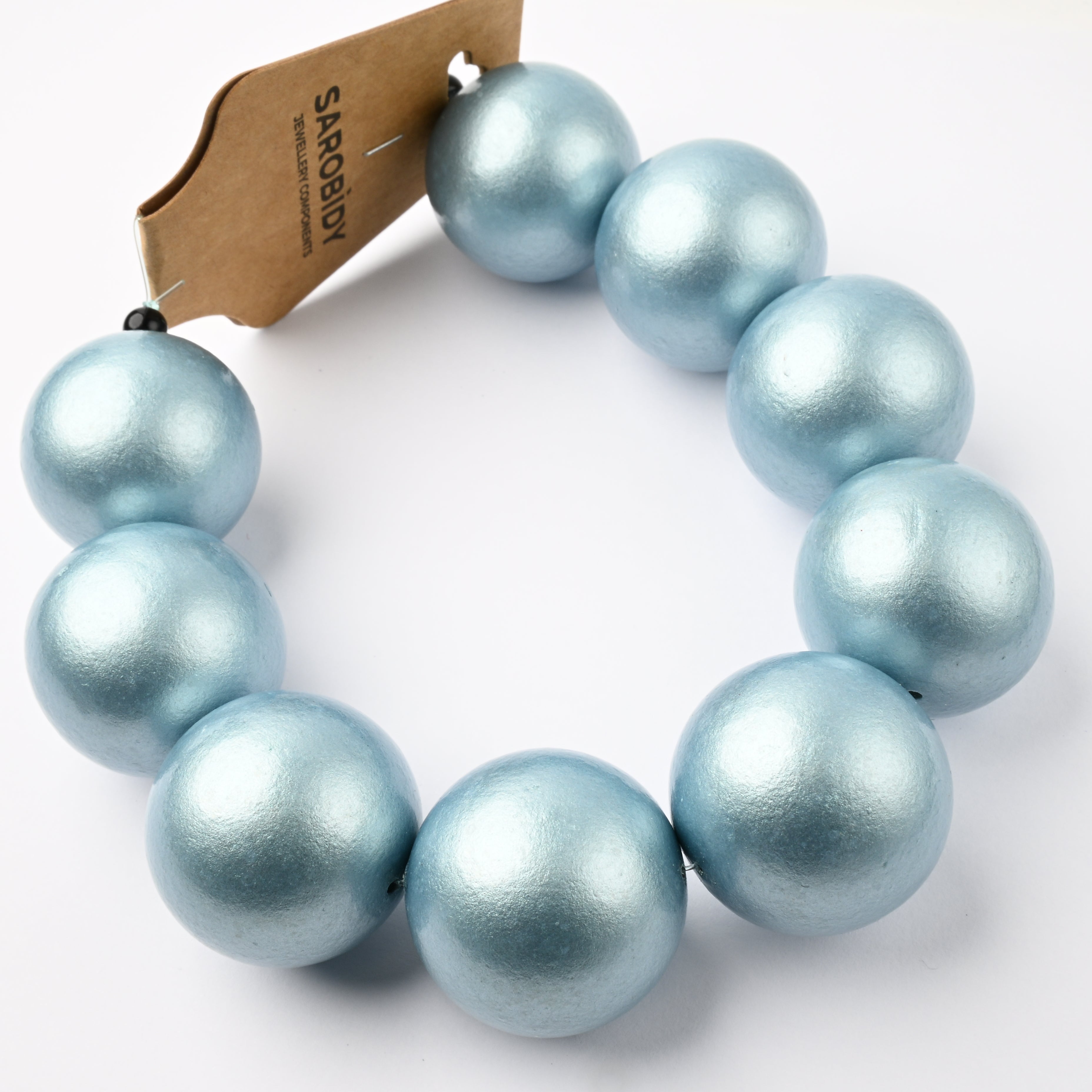 Perle in Legno Glossy Azzurro 30mm - Filo da 25 cm