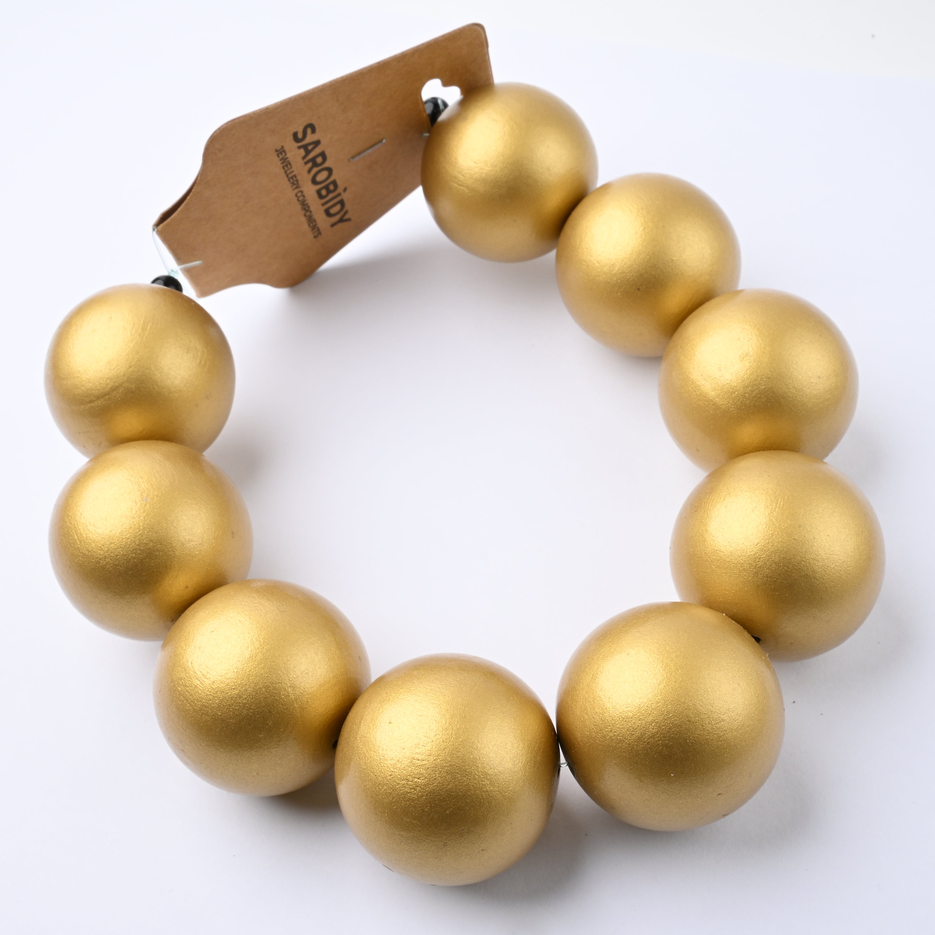 Perle in Legno Glossy Oro 30mm - Filo da 25 cm