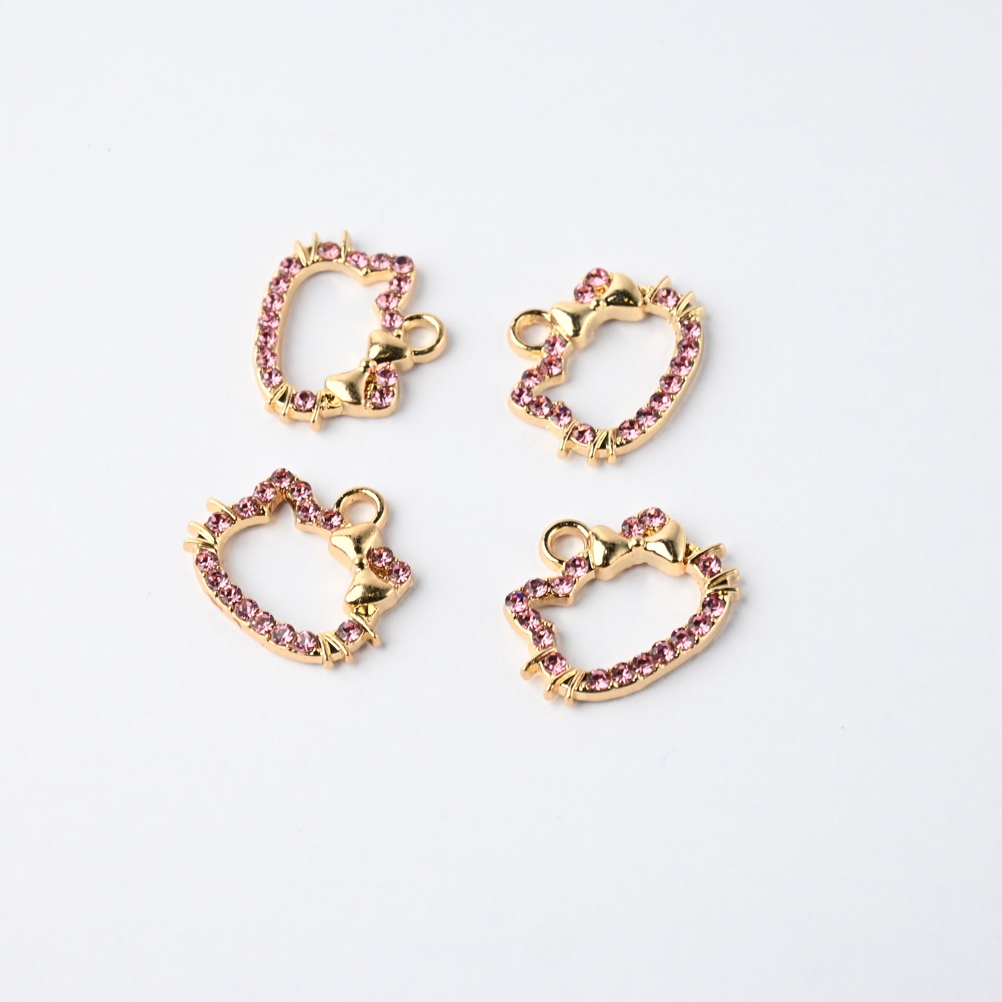Ciondoli Smaltati Kitty Rosa Strass 20x11mm