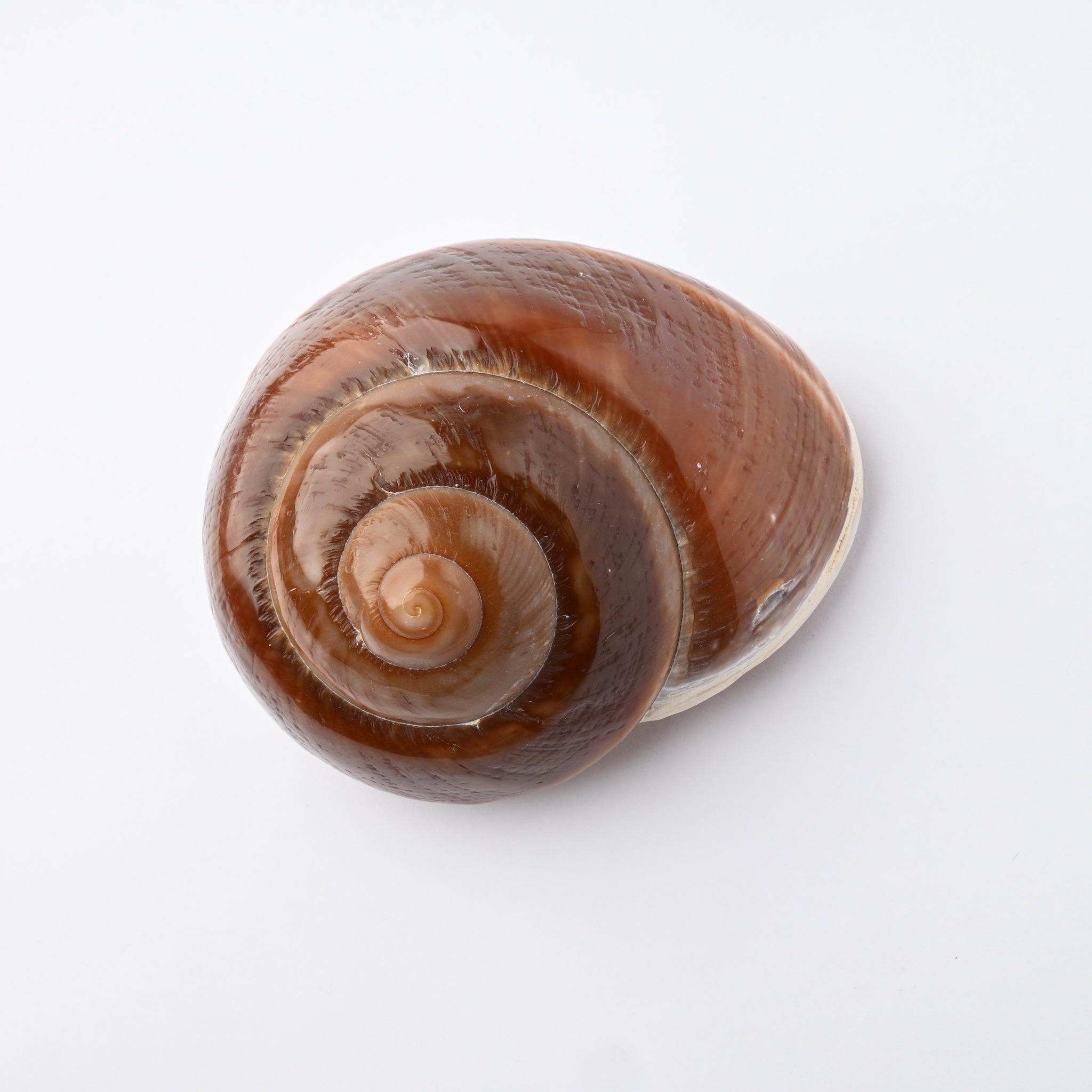 La Rhyssota Ovum è una conchiglia che seduce per le sue tonalità calde, avvolgenti e terrose. A differenza delle conchiglie marine calcifiche, questa grande chiocciola di terra si distingue per una superficie incredibilmente liscia e naturalmente lucida, che ricorda la texture del legno di mogano o della castagna. I suoi colori spaziano dal marrone cioccolato intenso all'ambra traslucida, creando un effetto visivo morbido e sofisticato. Nonostante il volume generoso e la forma globosa, è leggerissima: una caratteristica che la rende comodissima da indossare. Già dotata di foro, è il pendente perfetto per creazioni dallo stile "eco-chic", ideali per l'autunno o da abbinare a materiali naturali come cuoio, corda e legno.