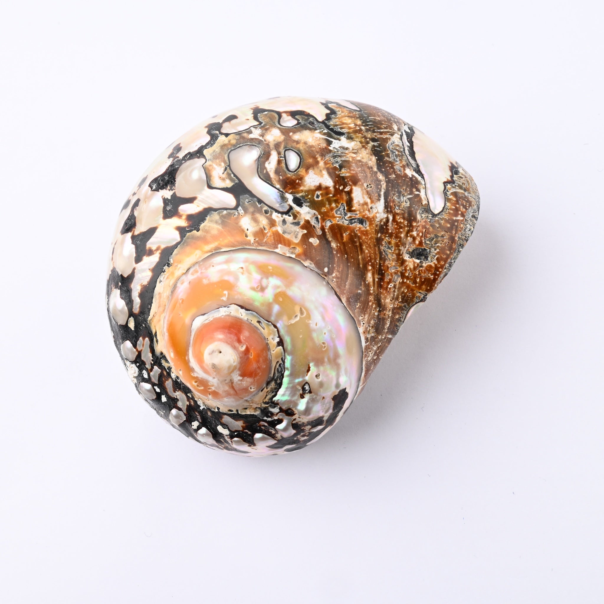 La Turbo Sarmaticus è una conchiglia dalla bellezza vigorosa e selvaggia, molto apprezzata per il suo forte impatto materico. Il guscio è caratterizzato da una superficie irregolare e scultorea, ricca di noduli, che alterna i toni scuri della terra e della roccia a improvvisi lampi di madreperla argentata che emergono dal fondo. Questo contrasto tra l'aspetto grezzo esterno e il cuore prezioso la rende unica nel suo genere. Già dotata di foro, è il pendente ideale per creazioni dallo stile "organic" e bohémien, perfetta per chi vuole evocare la forza e la profondità dell'oceano.