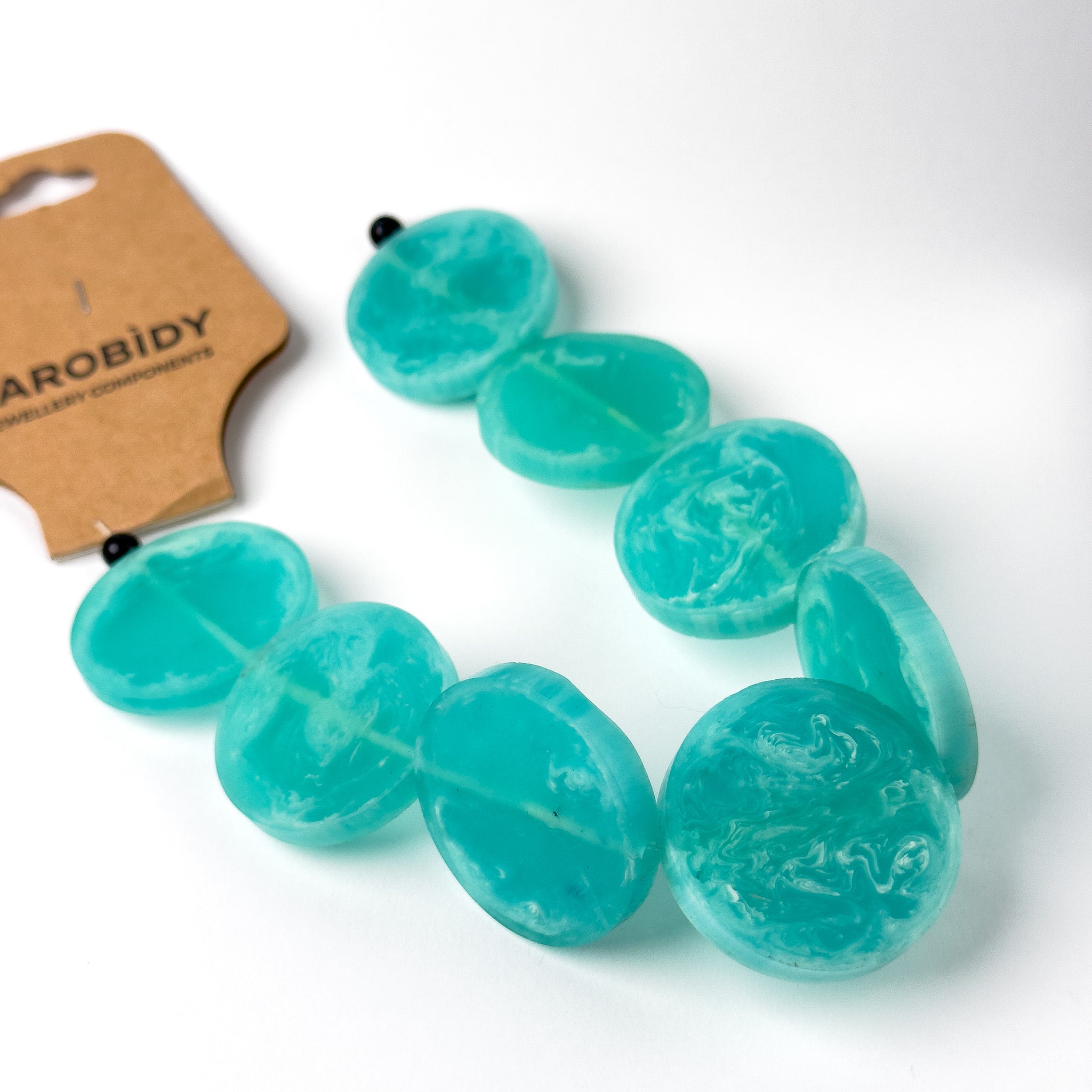 Perle in Resina Artigianali Disco Acquamarina 32x5mm