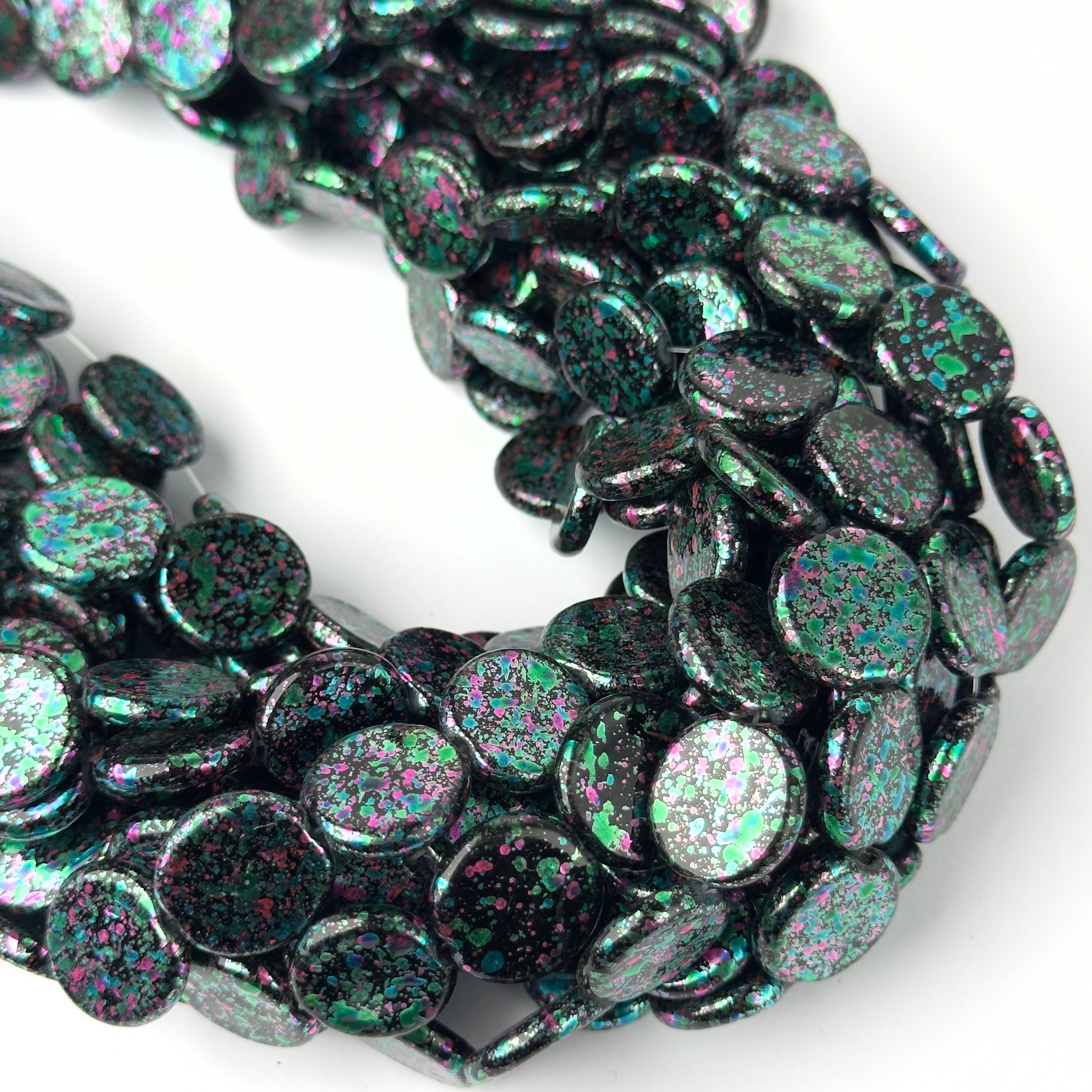 Perle Iridia Nero e Blu Pavone Disco 16mm - Filo da 80 cm
