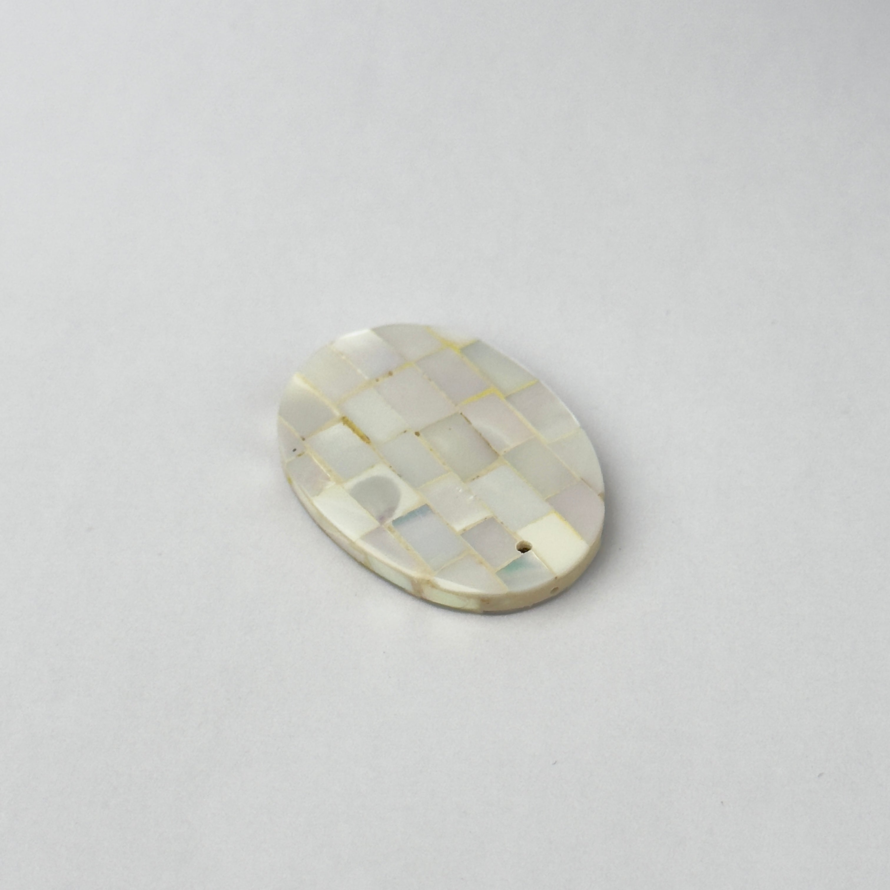 Un pezzo unico della nostra Collezione Artigianale "Luce d'Avorio". Questo componente unisce la lucentezza naturale della madreperla alla profondità della resina, in una delicata armonia di tonalità avorio.