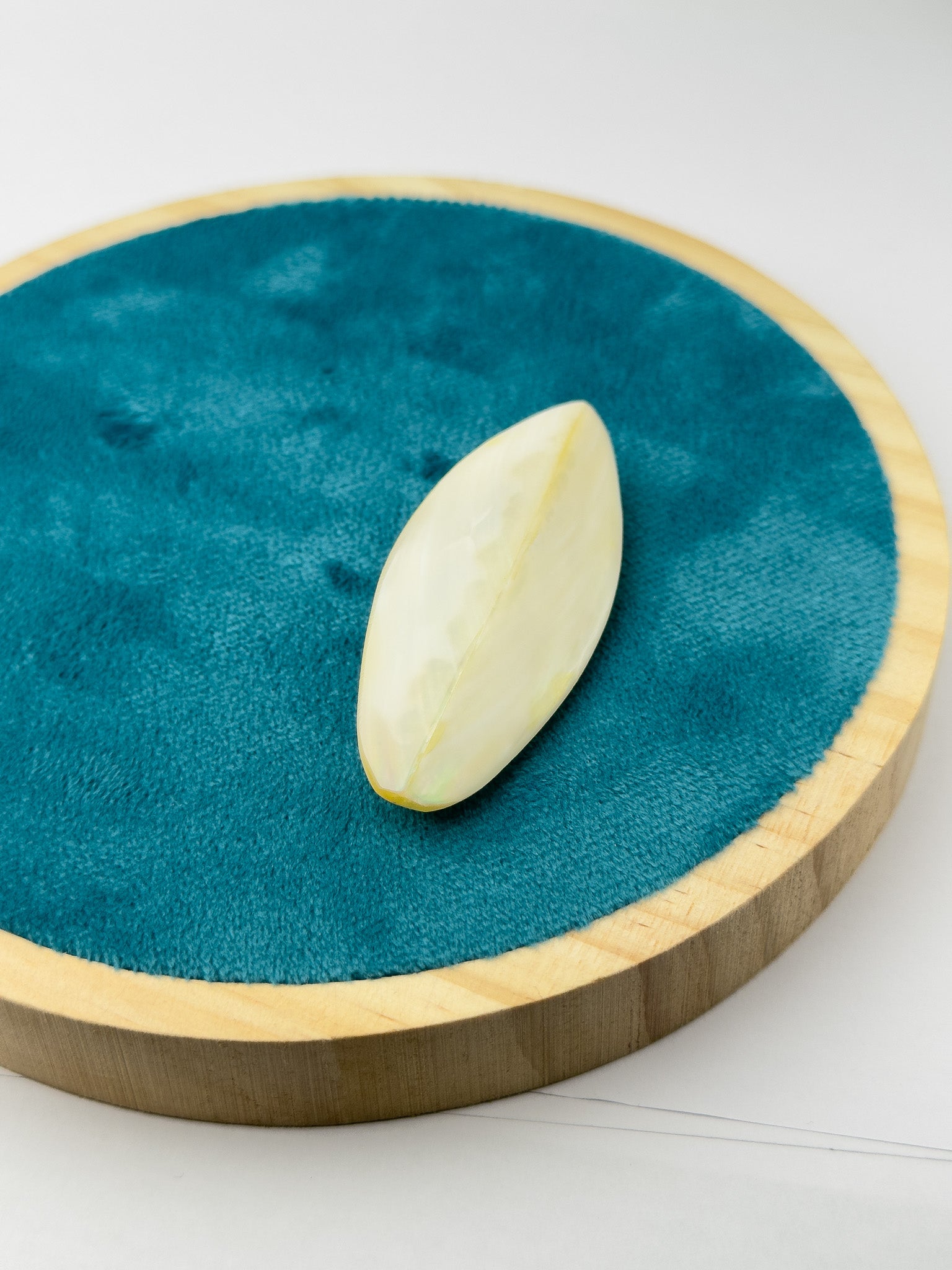 Un pezzo unico della nostra Collezione Artigianale “Riflessi di Miele”. Questo componente cattura la luce in modo straordinario, rivelando calde tonalità giallo miele/dorato e delicati riflessi perlescenti.
