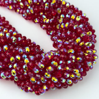 Cristalli Rondella Rosso Carminio Trasparente Perlato 8mm - Filo da 40 cm | Sarobidy