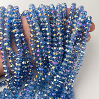 Cristalli Rondella Blu Zaffiro Trasparente Aurora Boreale 8mm - Filo da 40 cm | Sarobidy
