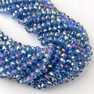 Cristalli Rondella Blu Avio Trasparente Perlato 8mm - Filo da 40 cm | Sarobidy