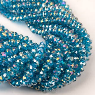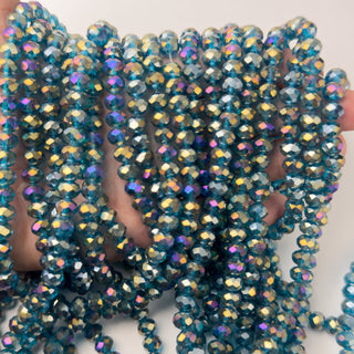 Cristalli Rondella Blu Petrolio Trasparente Aurora Boreale 8mm - Filo da 40 cm | Sarobidy