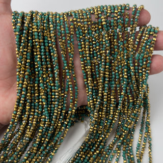 Cristalli Rondella Verde e Oro Bicolore Metalizzzato 3mm - Filo da 40 cm | Sarobidy