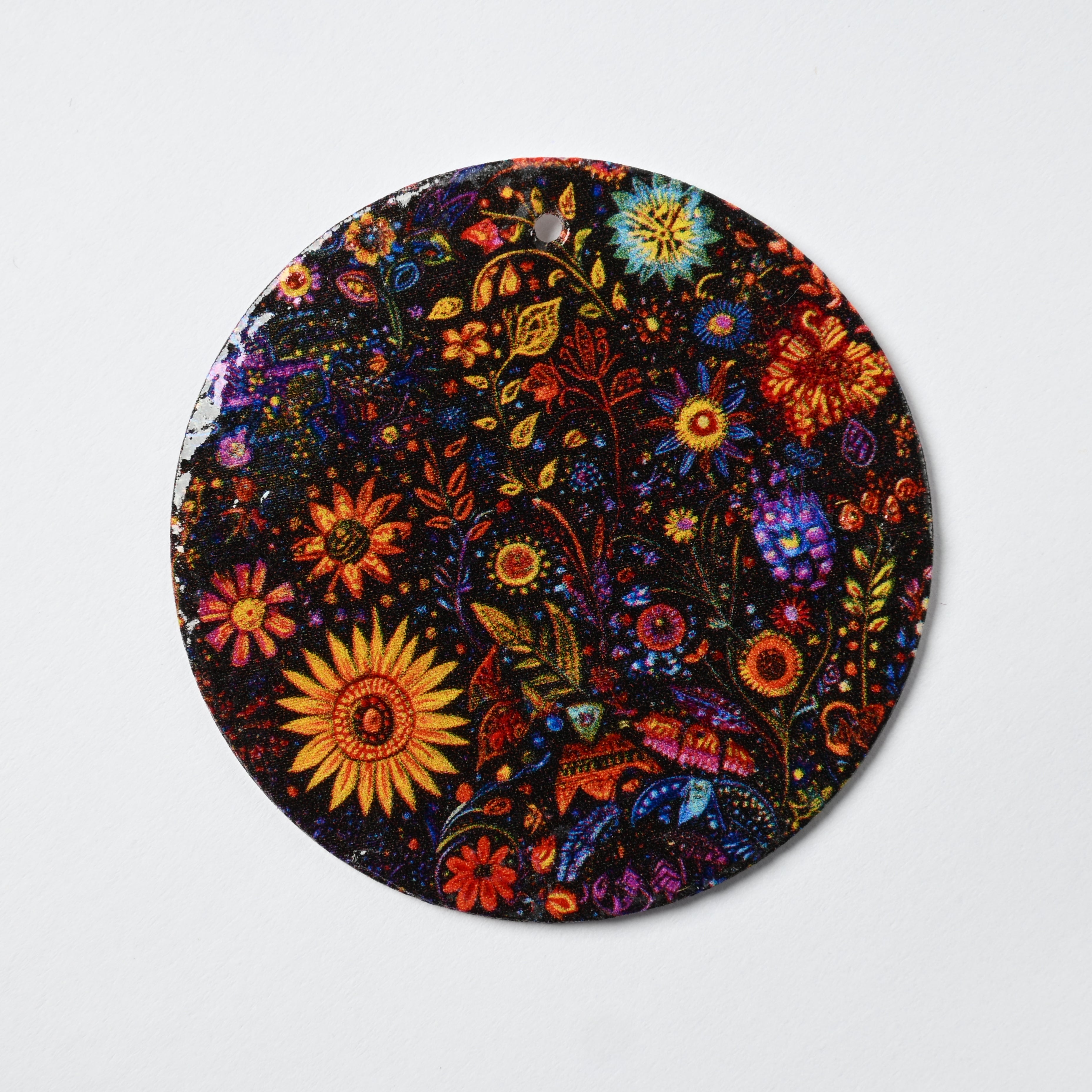 La base in madreperla fornisce un'iridescenza unica e una lucentezza cangiante che reagisce alla luce, donando profondità al motivo grafico. La sua naturale leggerezza lo rende un componente ideale per orecchini e collane.