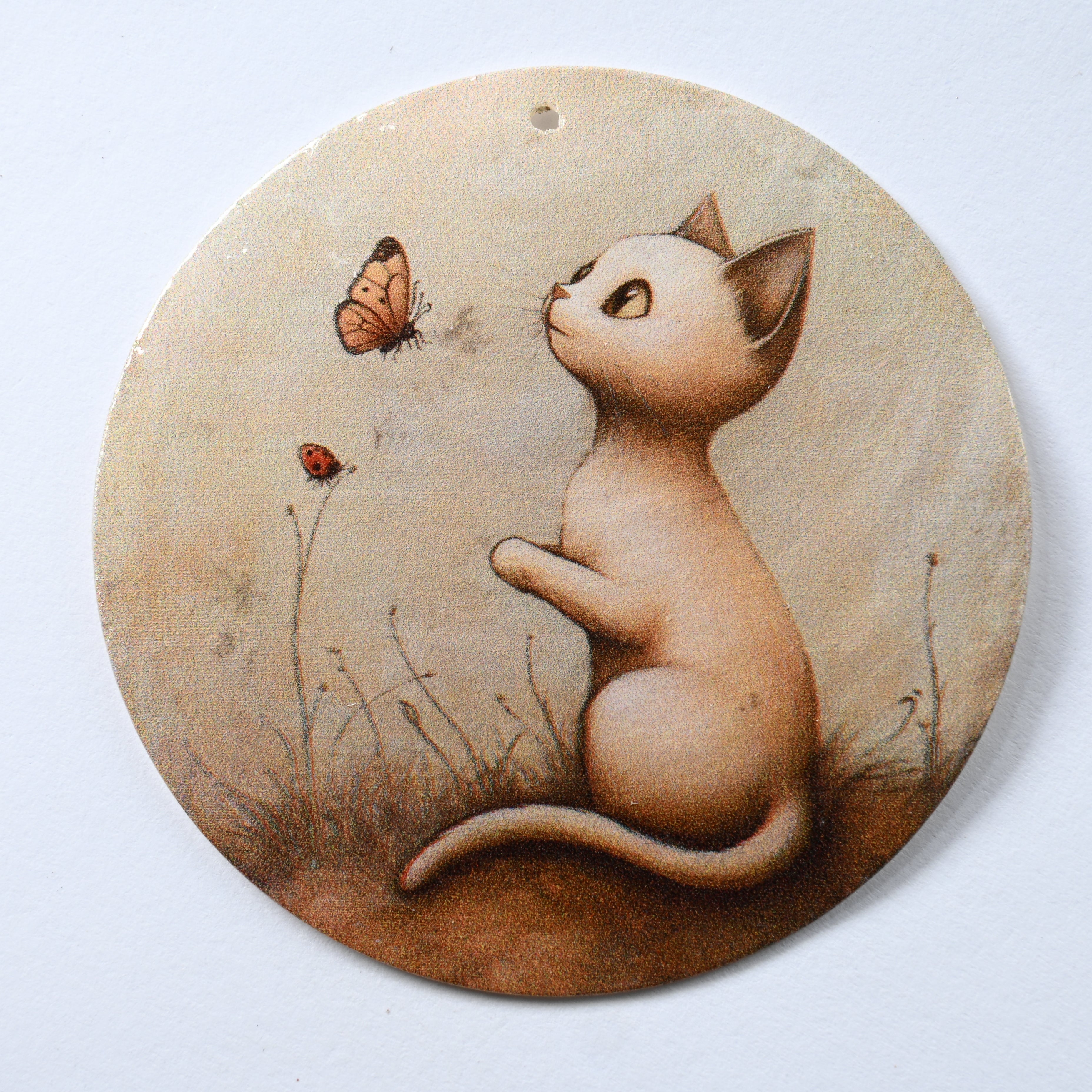 Pendente in Madreperla Gattino e Farfalla Disco 60mm