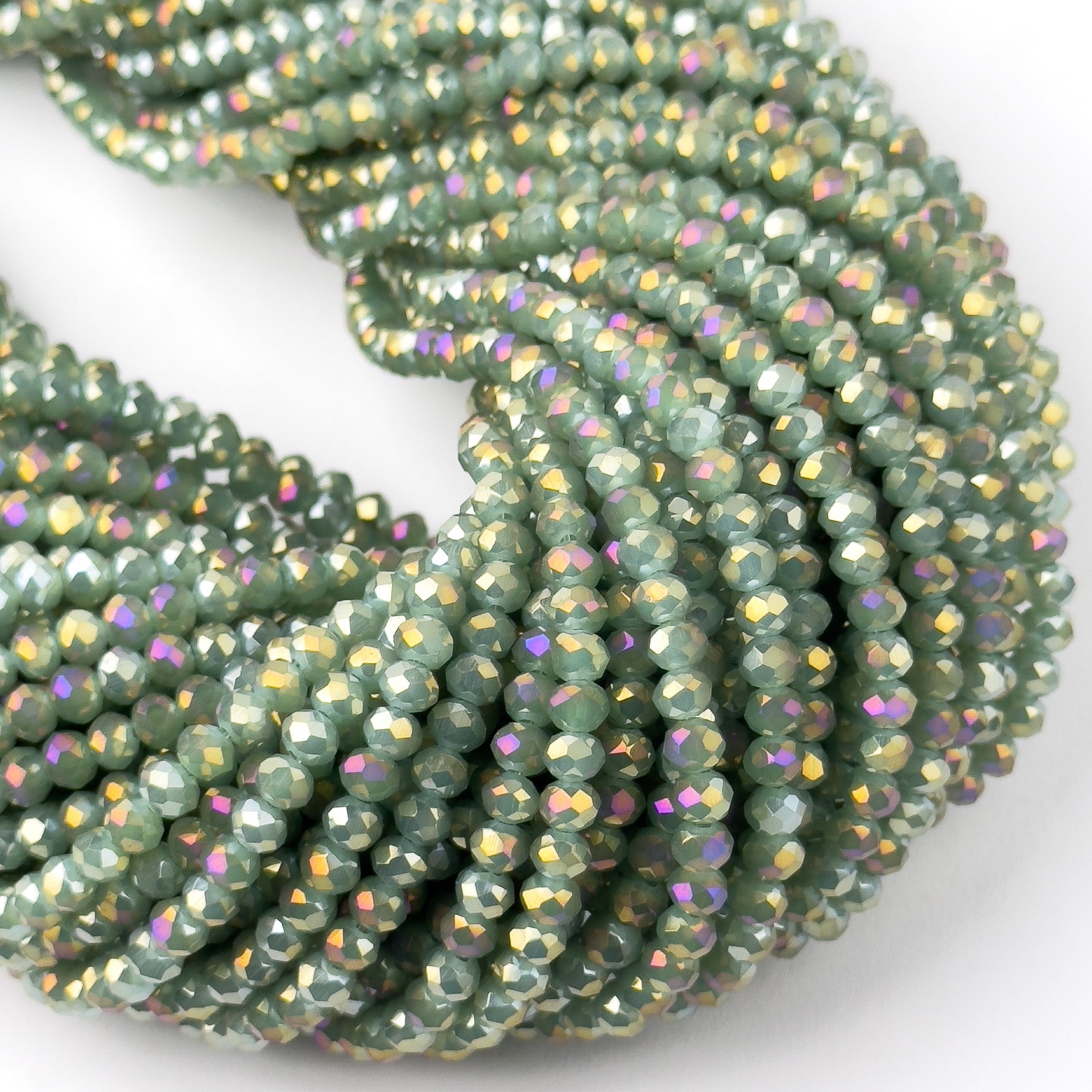 Cristalli Rondella Verde Salvia Aurora Boreale 4mm - Filo da 40 cm | Sarobidy