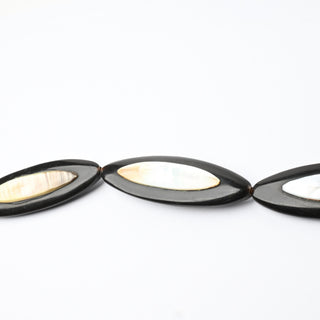 Perle in Corno Naturale con Inserto in Madreperla Navette Nero 60x20x10mm
