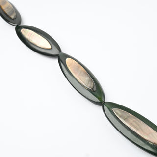 Perle in Corno Naturale con Inserto in Madreperla Navette Verde Bosco 60x20x10mm