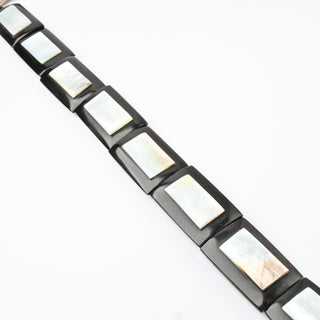 Perle in Corno Naturale con Inserto in Madreperla Rettangolari Nero e Bianco Perlaceo 28x19x7mm