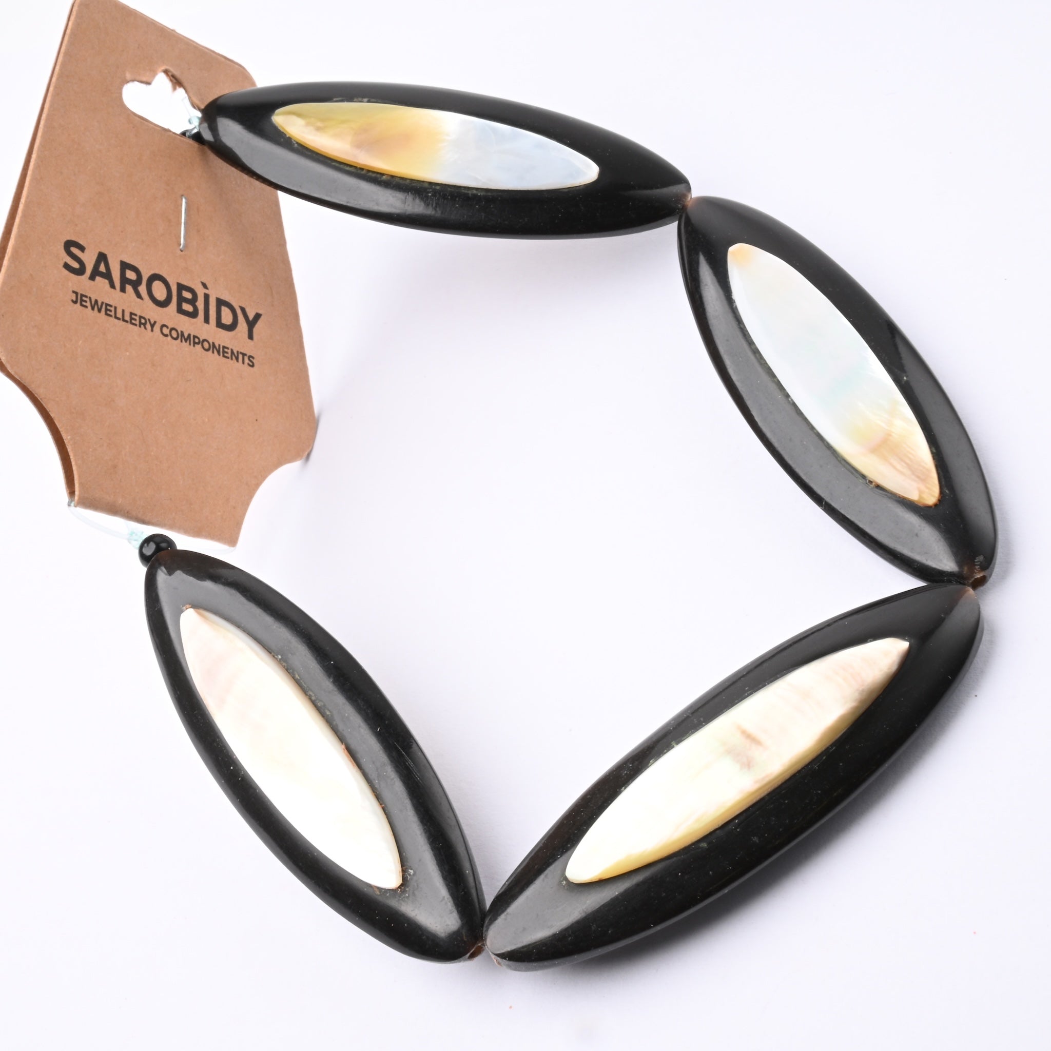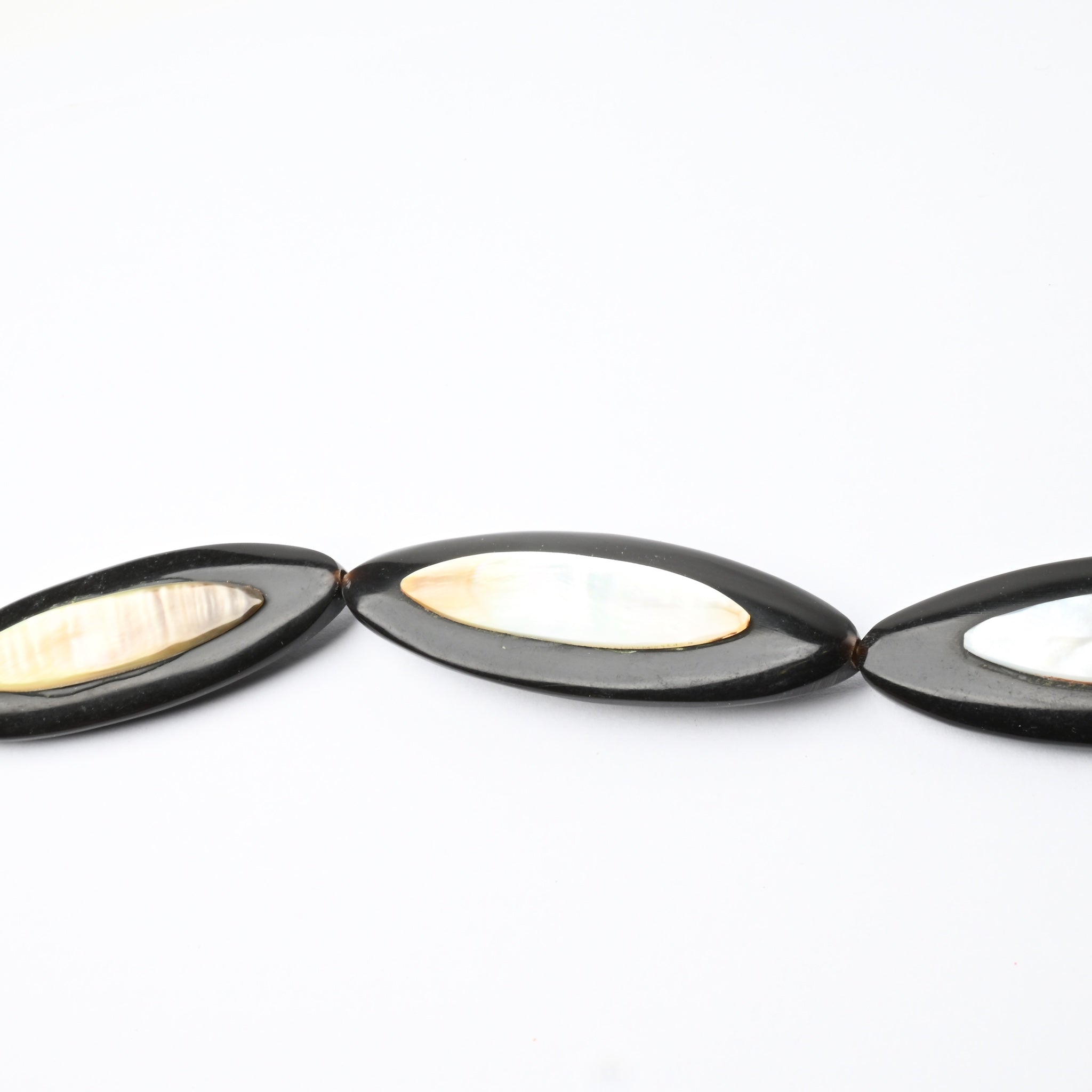 Perle in Corno Naturale con Inserto in Madreperla Navette Nero 60x20x10mm