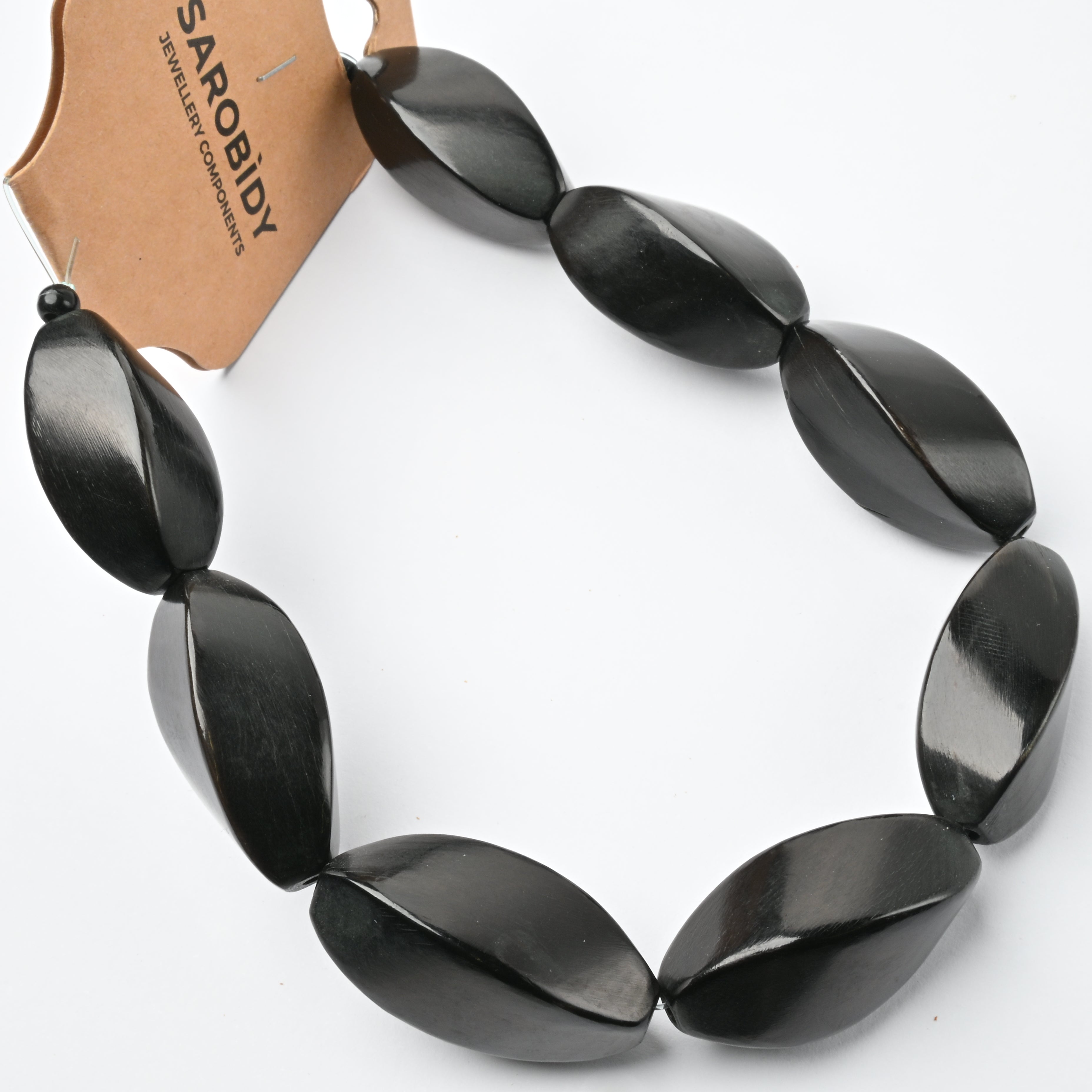 Perle in Corno Naturale Ovali Ritorte Nero 32x14mm