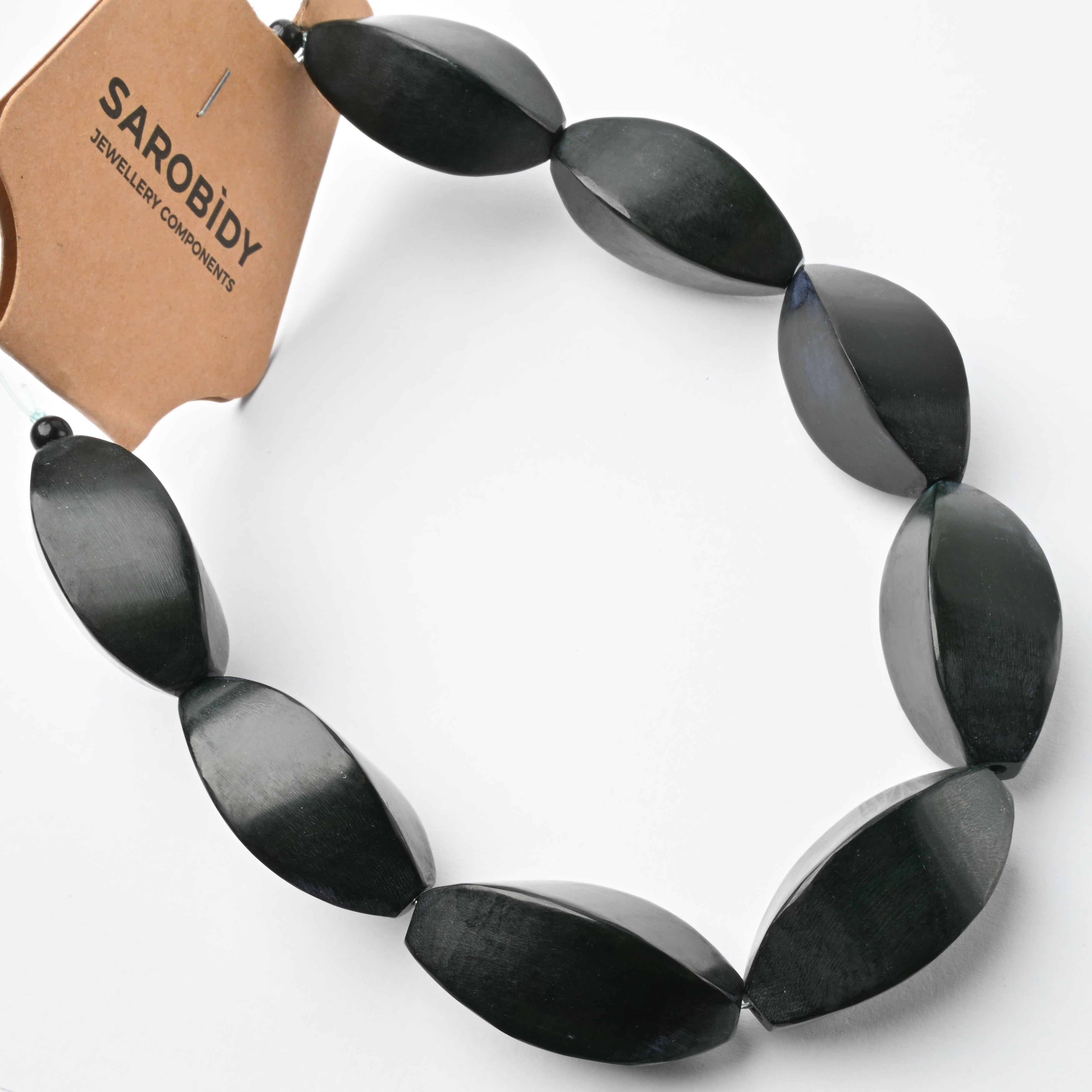 Perle in Corno Naturale Ovali Ritorte Verde Muschio 32x14mm