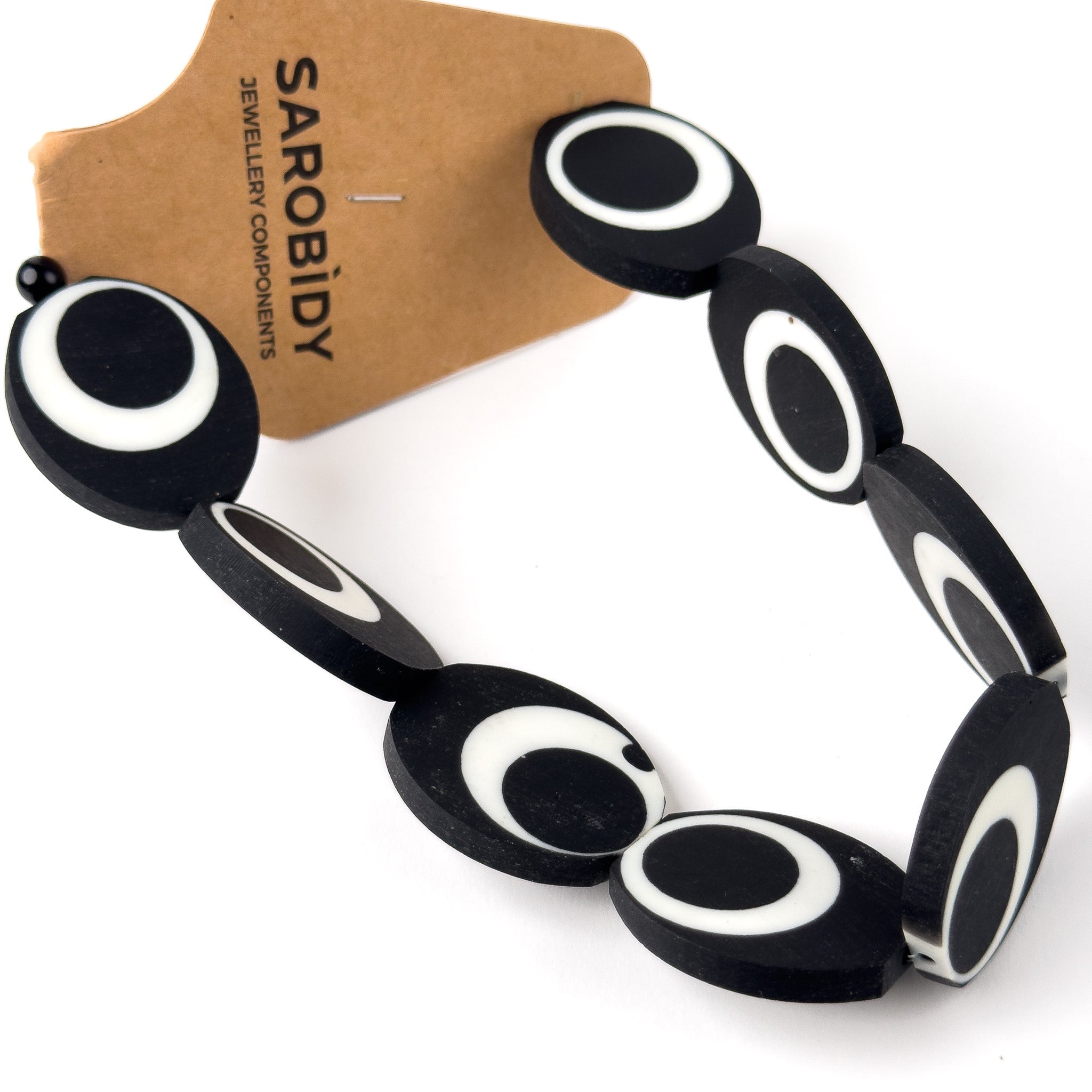 Perle in Resina Artigianali Ovale Bianco, Nero 31x26mm