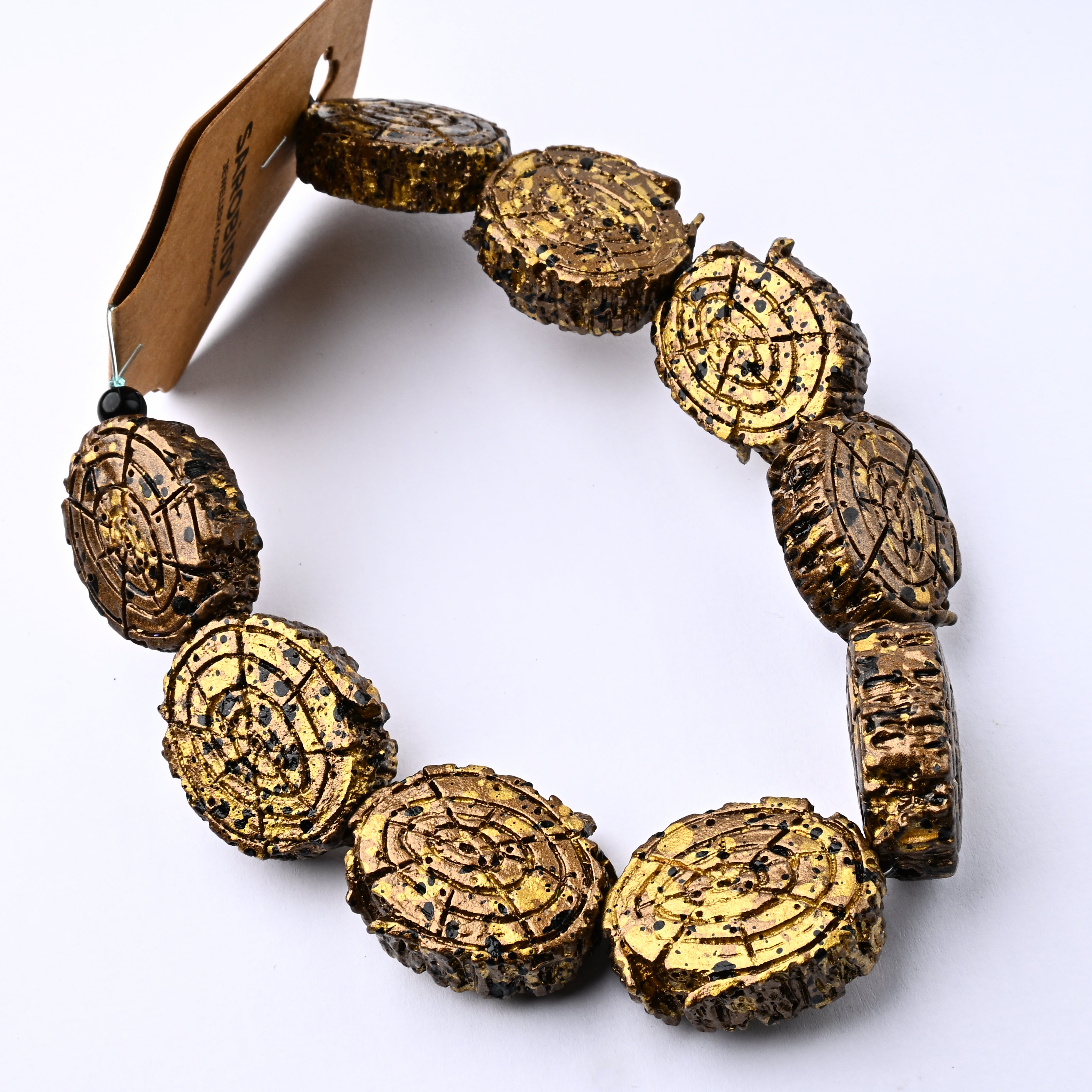 Perle in Resina Ovale Nero e Oro 28x22mm