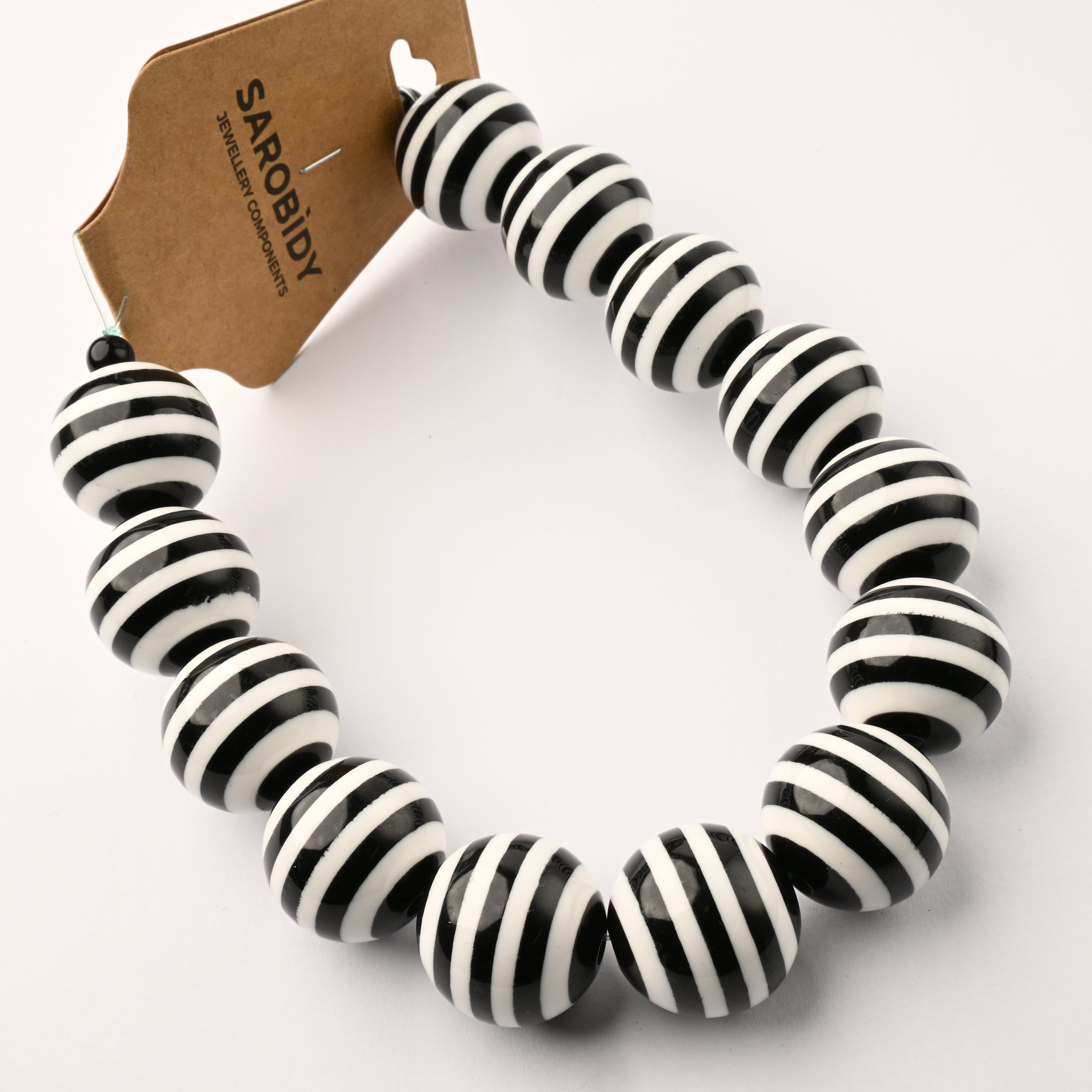 Perle in Resina Tondo Bianco e Nero Strisce Piccole 20mm