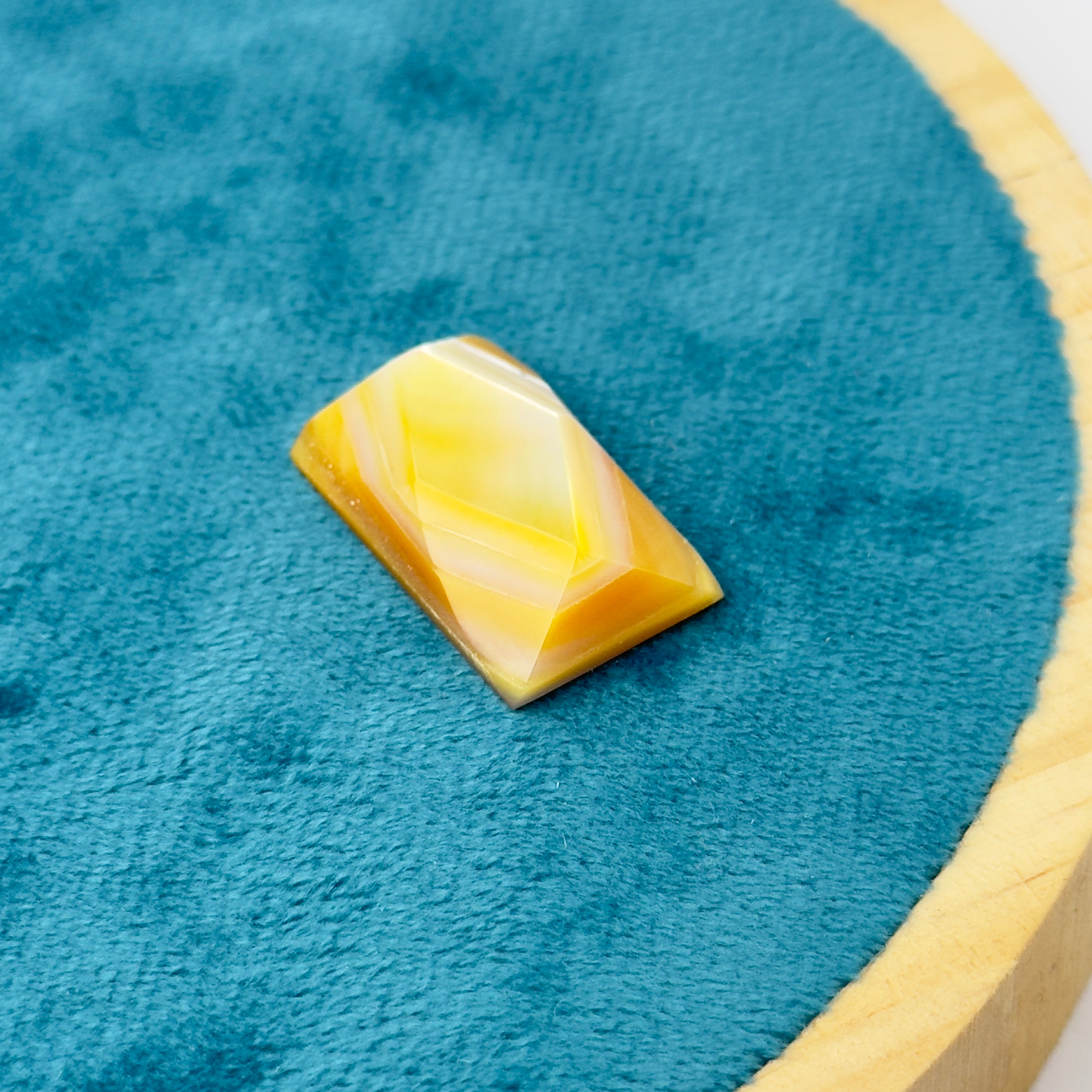Un pezzo unico della nostra Collezione Artigianale “Riflessi di Miele”. Questo componente cattura la luce in modo straordinario, rivelando calde tonalità giallo miele/dorato e delicati riflessi perlescenti.