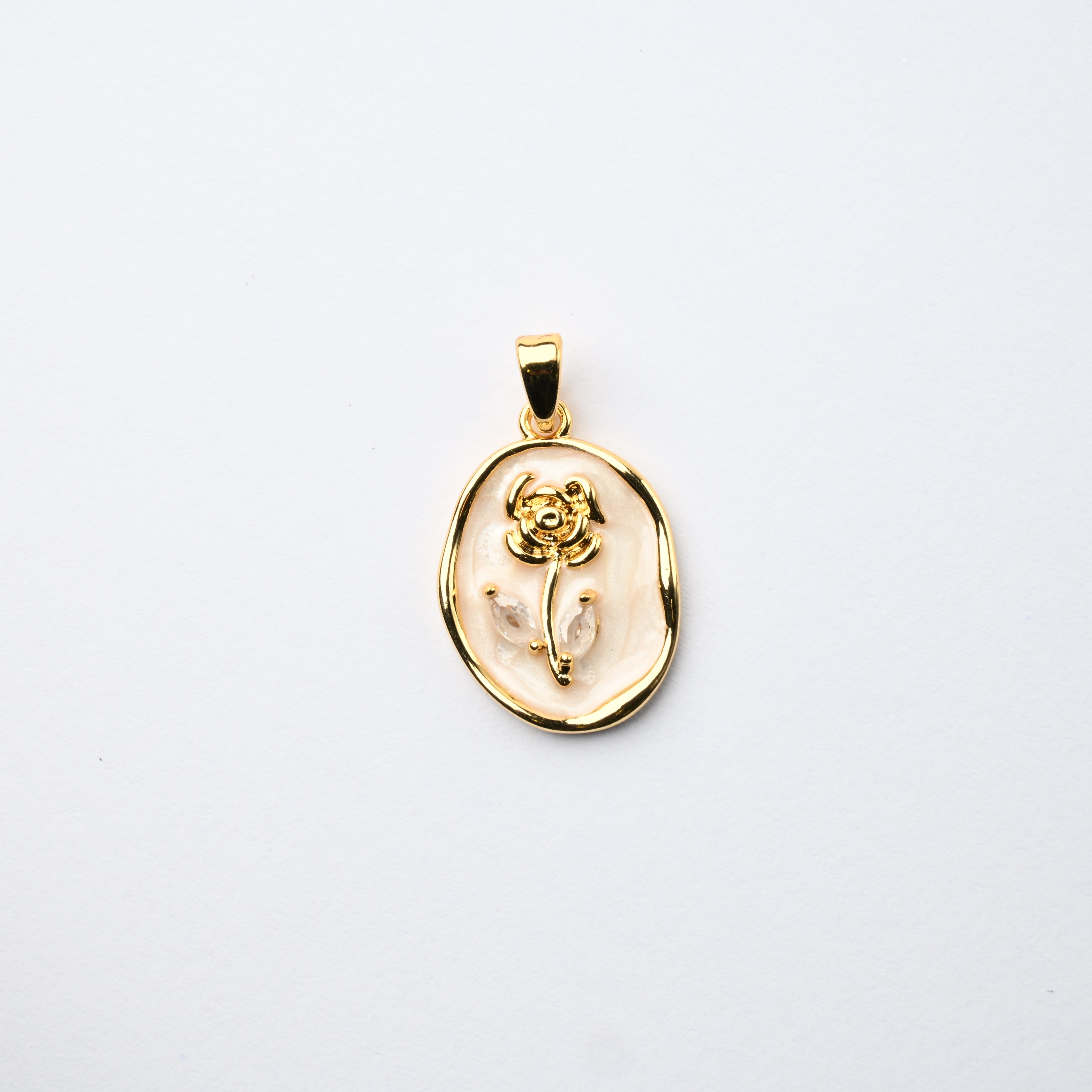 Ciondolo Rosa Dorata Stilizzata su Smalto Nude Irregolare Ovale 17x14mm - Artigianale