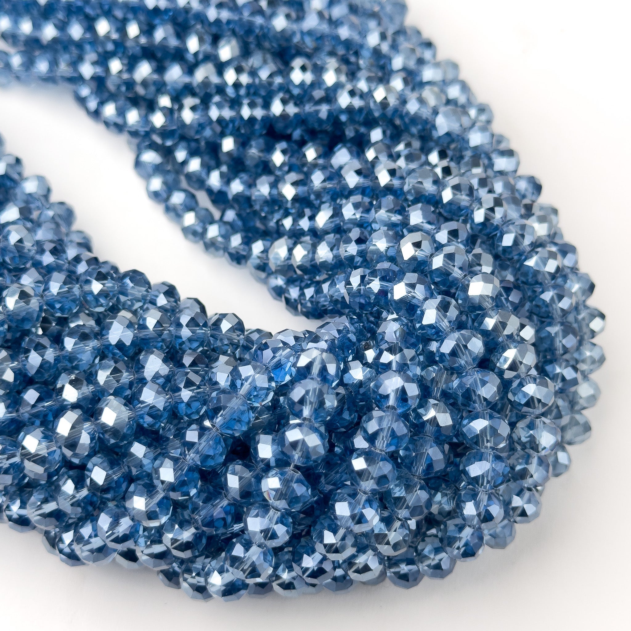 Cristalli Rondella Blu Avio Trasparente Perlato 8mm - Filo da 40 cm | Sarobidy