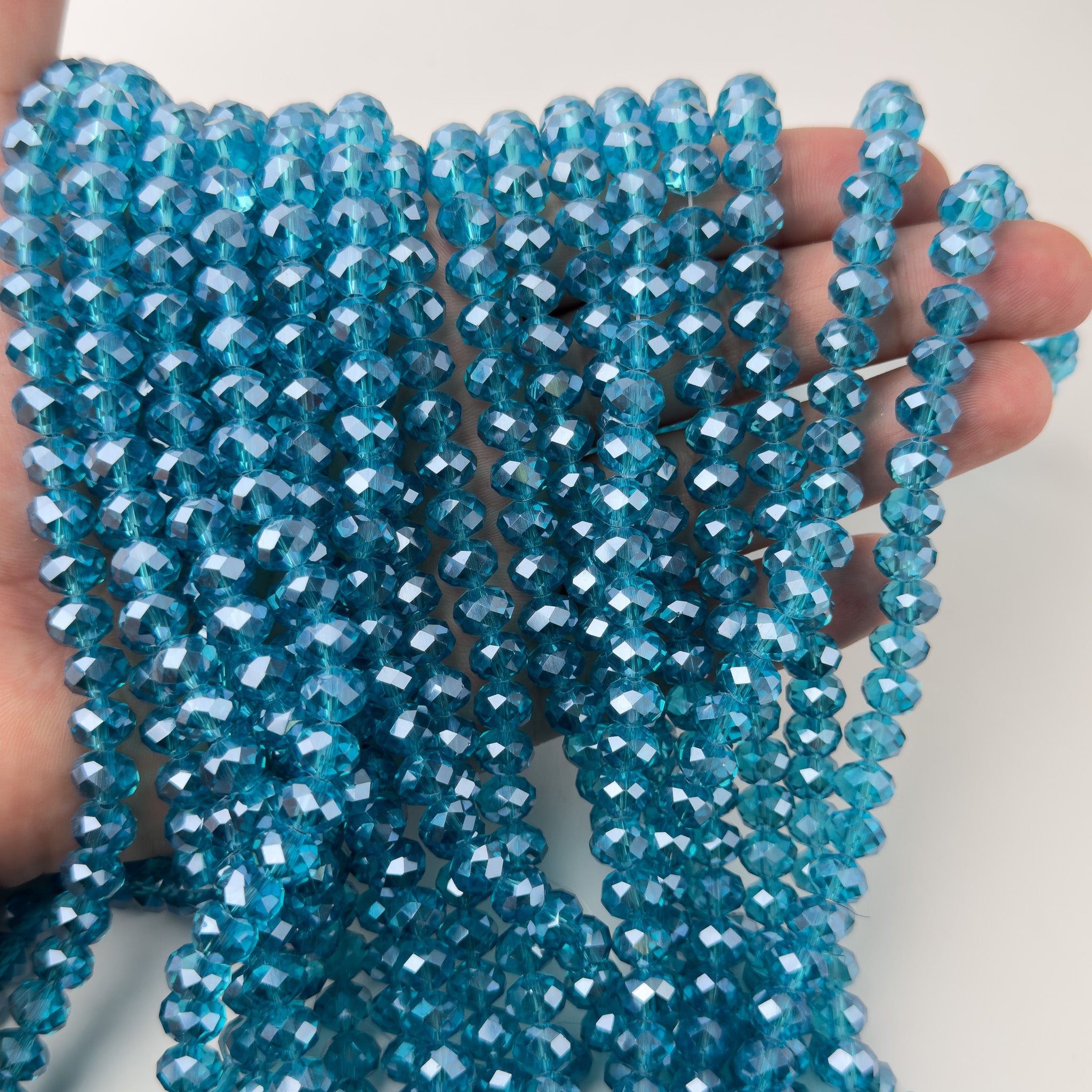 Cristalli Rondella Blu Pavone Trasparente Perlato 8mm - Filo da 40 cm | Sarobidy