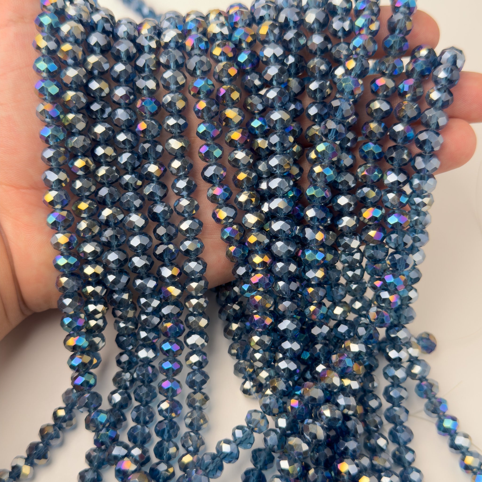 Cristalli Rondella Blu Zaffiro Trasparente Aurora Boreale 8mm - Filo da 40 cm | Sarobidy