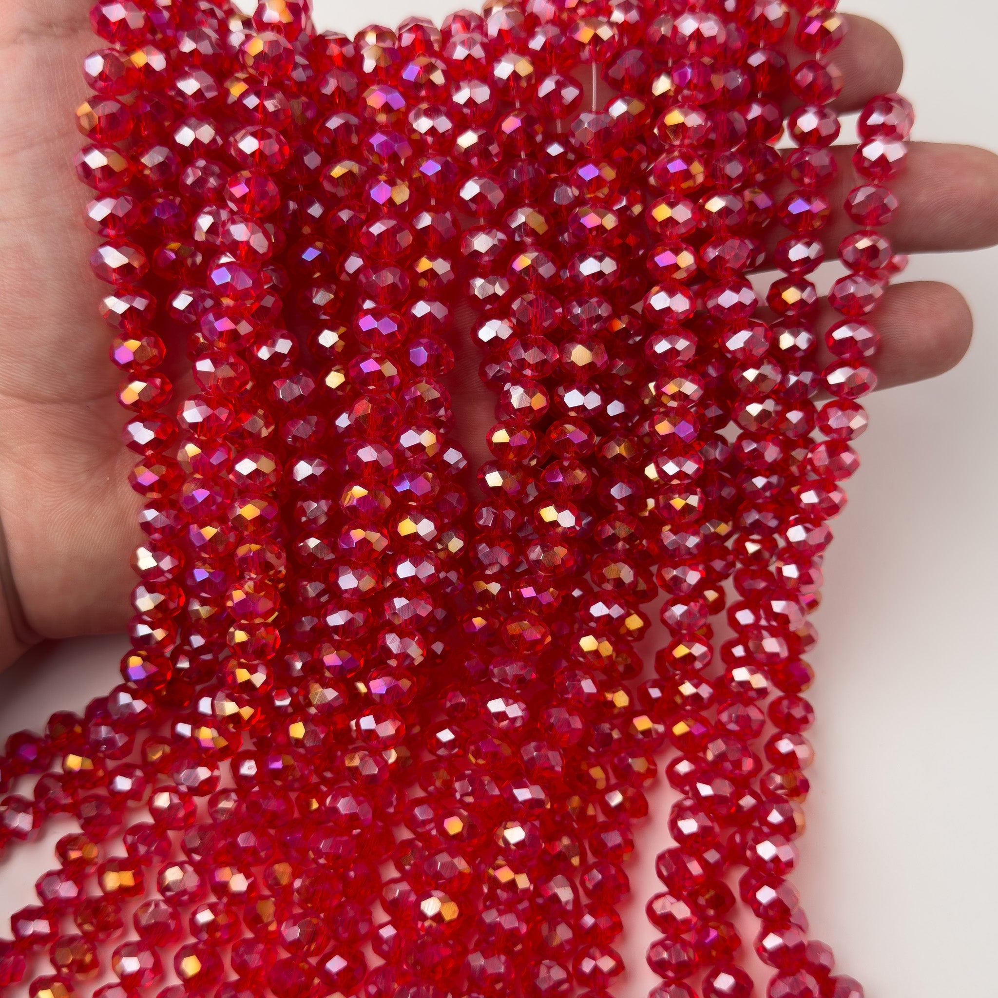 Cristalli Rondella Rosso Fragola Trasparente Aurora Boreale 8mm - Filo da 40 cm | Sarobidy