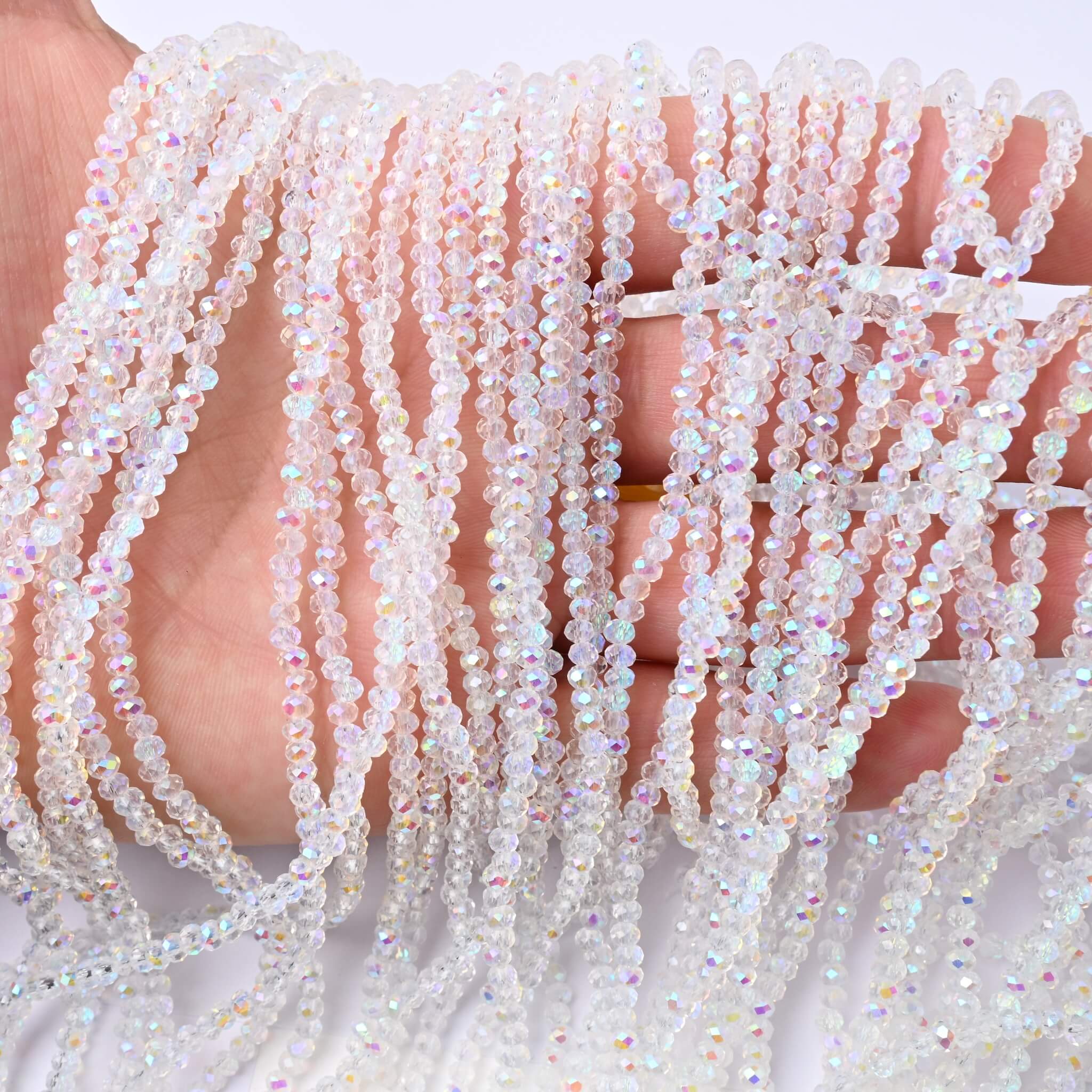 Un vero e proprio 'must-have' per ogni creativa, le nostre rondelle di cristallo da 3mm sono l'ingrediente per aggiungere dettagli di luce e raffinatezza a qualsiasi progetto. La loro misura compatta e le precise sfaccettature catturano la luce creando una brillantezza incredibile, ideale per dare un tocco professionale a ogni creazione.