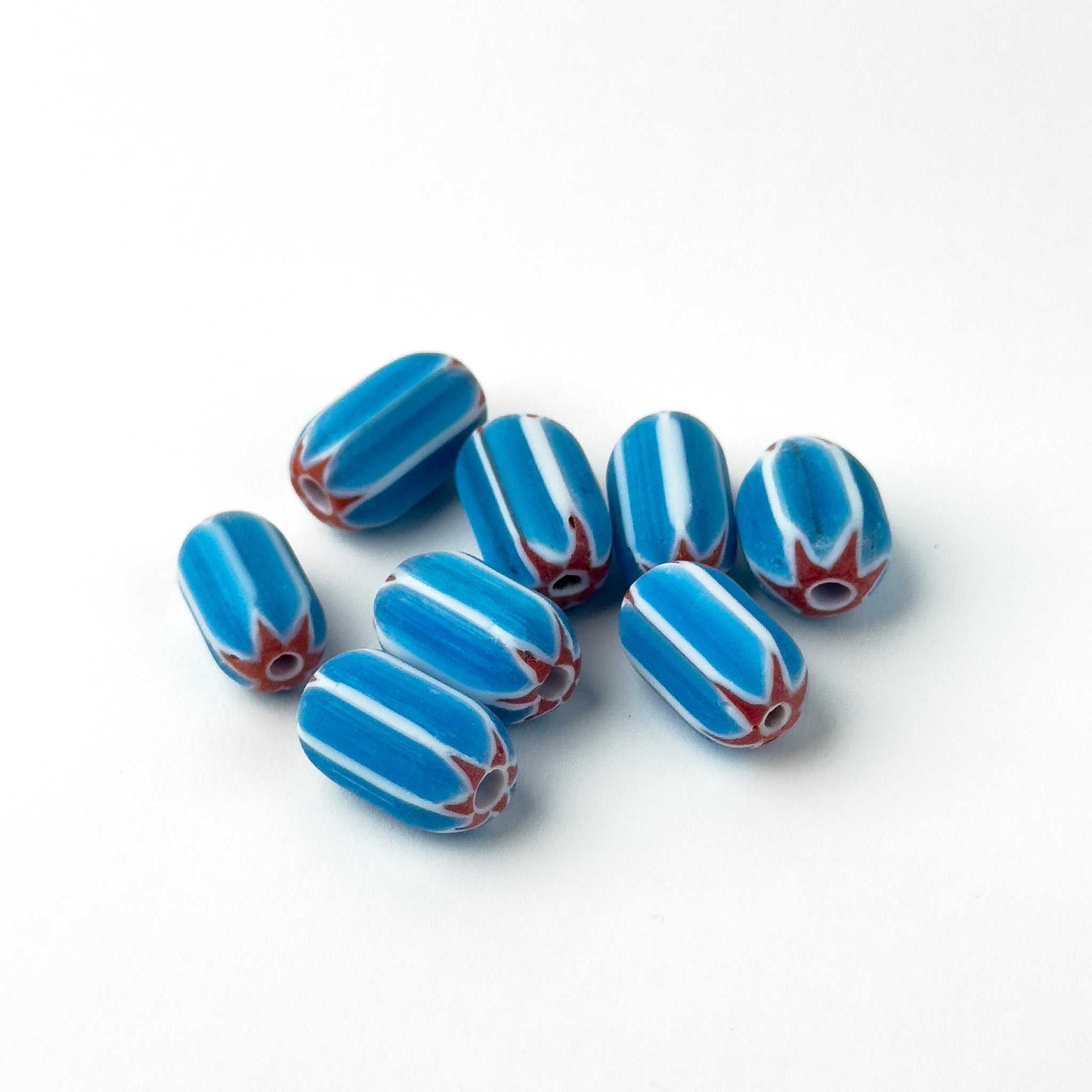 Perline Chevron Azzurro e Rosso 14mm - 8 pz