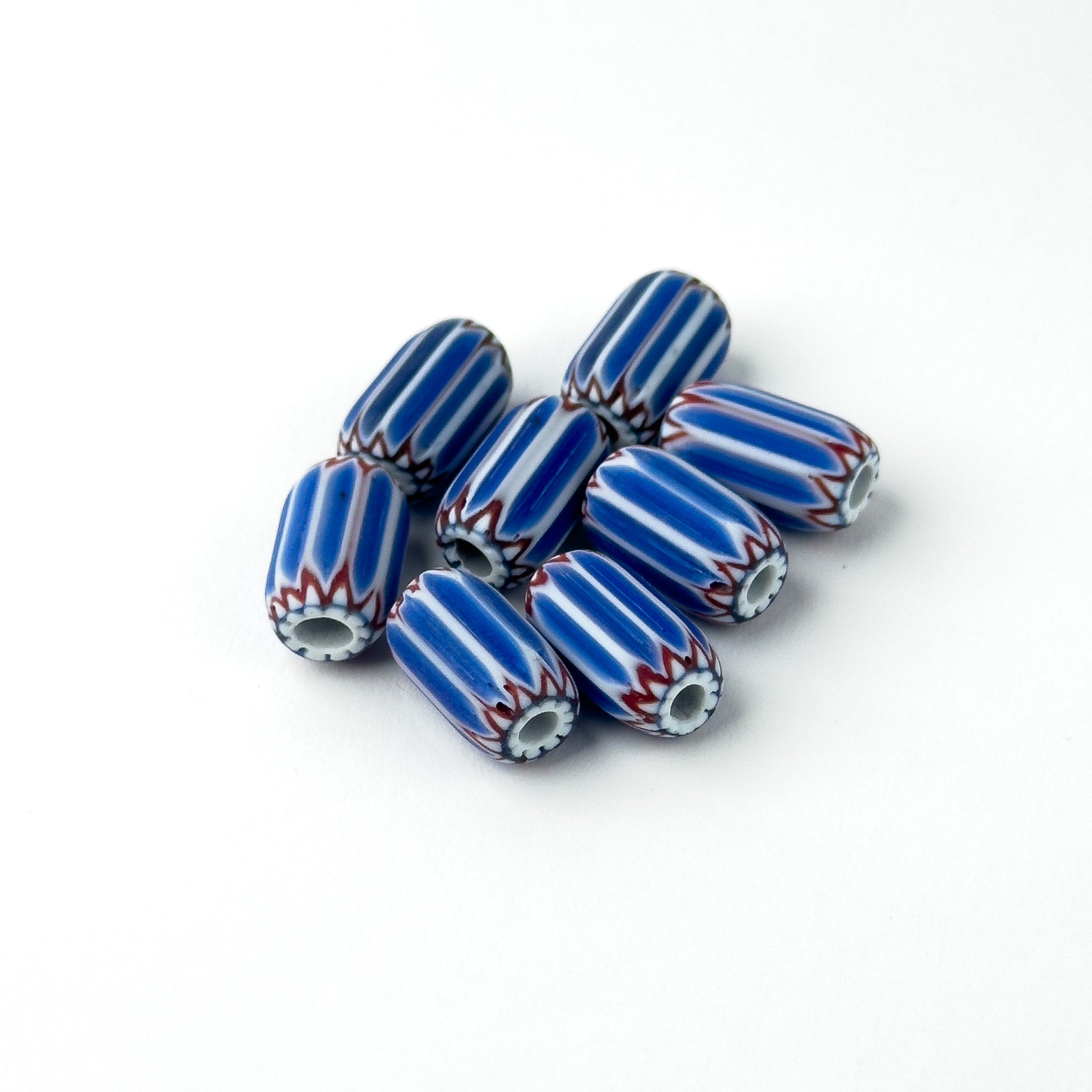 Perline Chevron Blu e Rosso 14mm - 8 pz