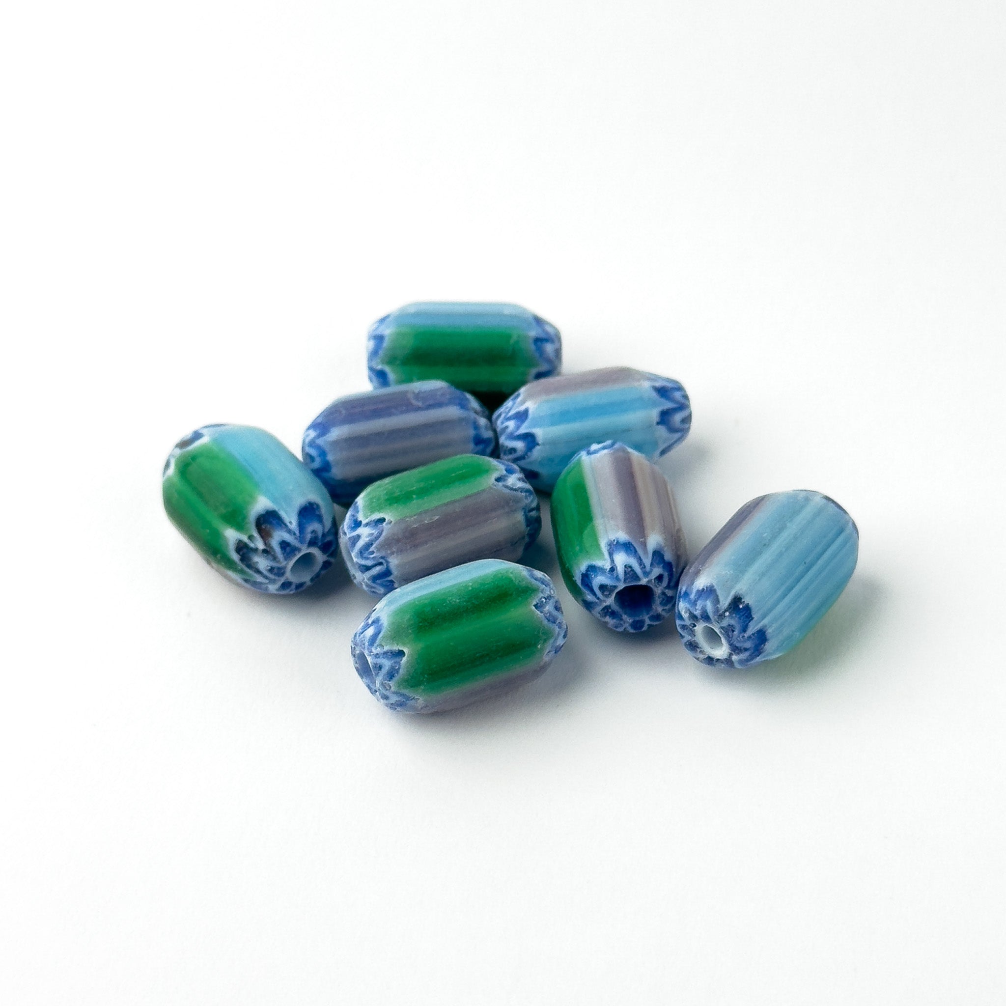 Perline Chevron Blu e Verde 14mm - 8 pz