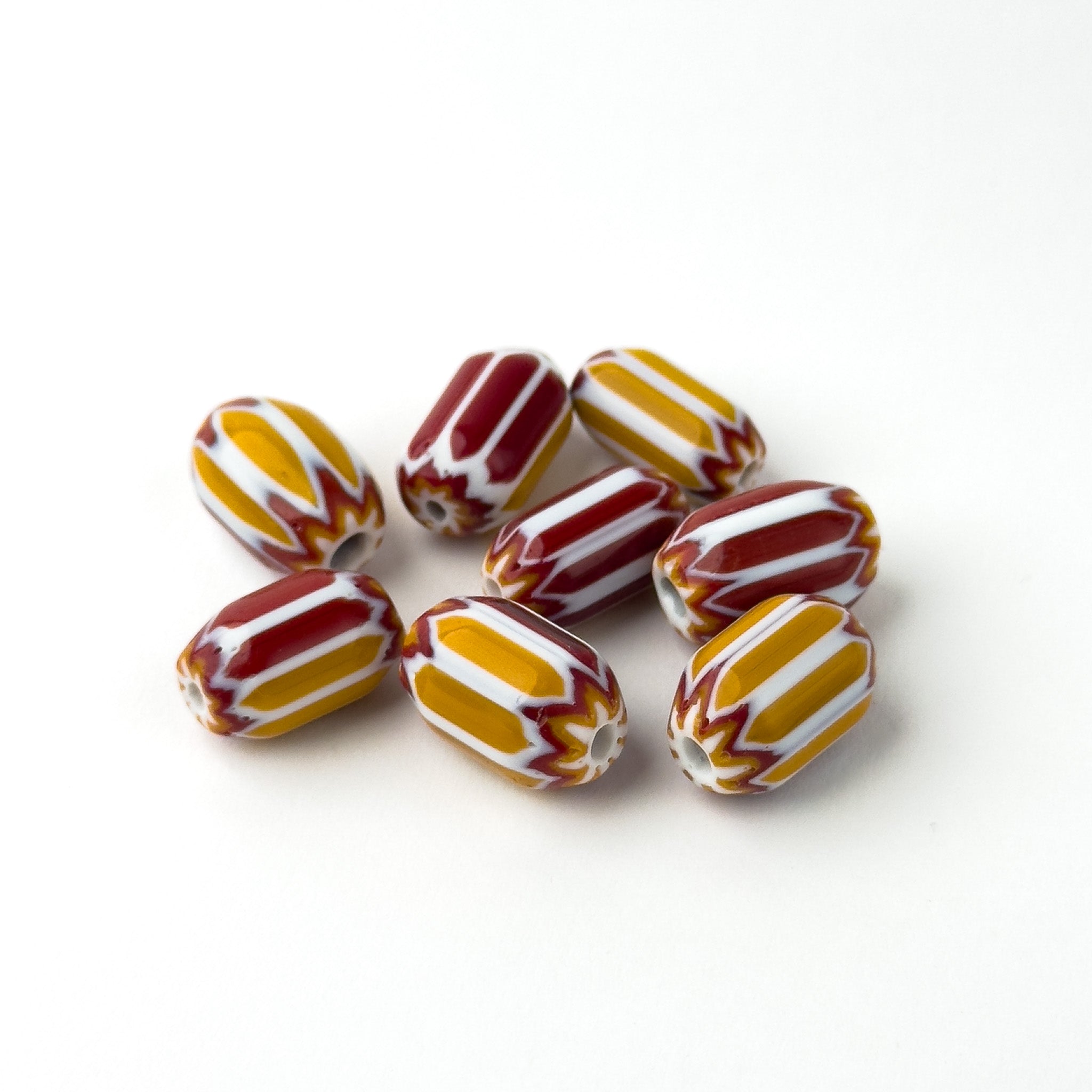 Perline Chevron Giallo e Rosso 14mm - 8 pz