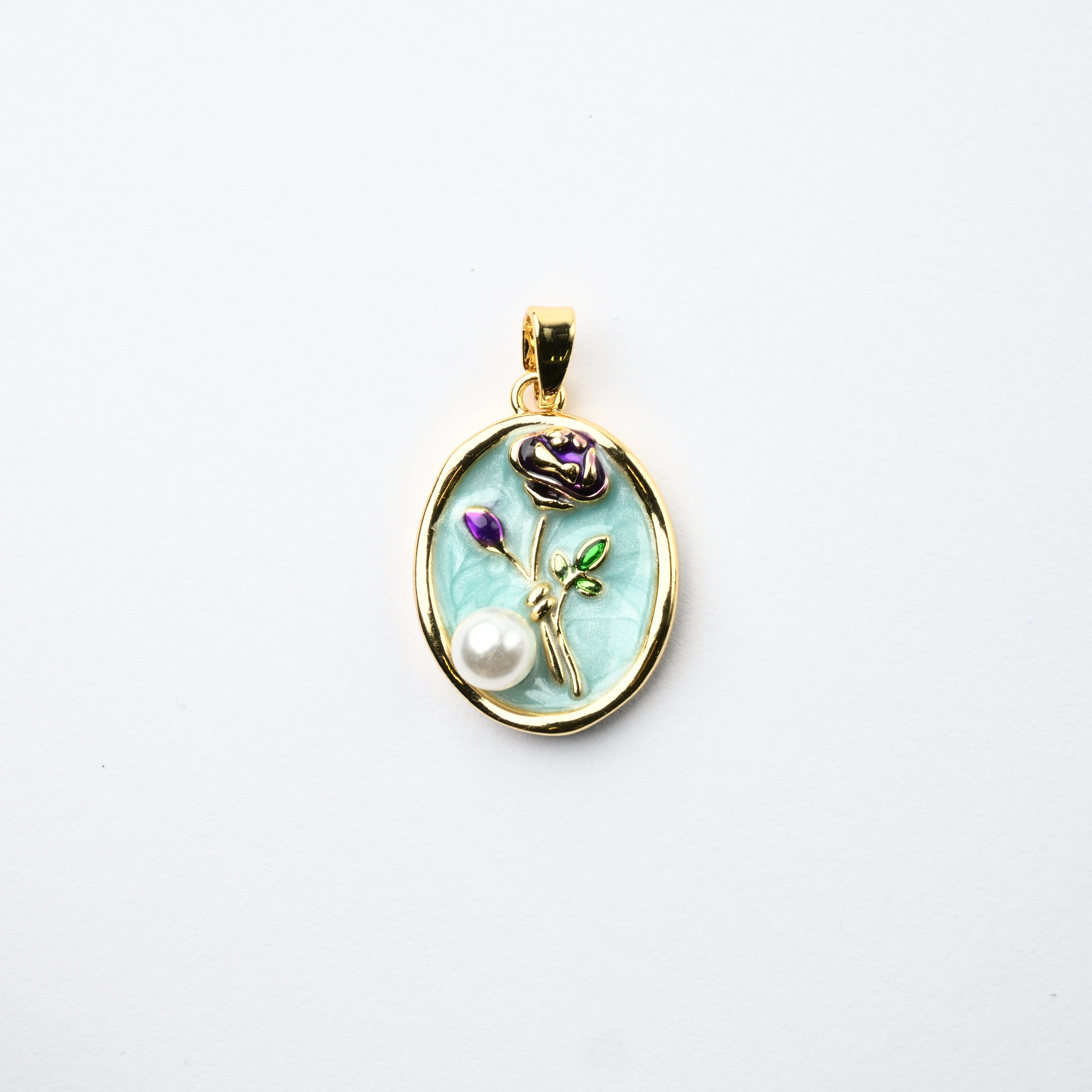 Ciondolo "Rosa Mistica" Viola con Perla Ovale 20x17mm - Artigianale